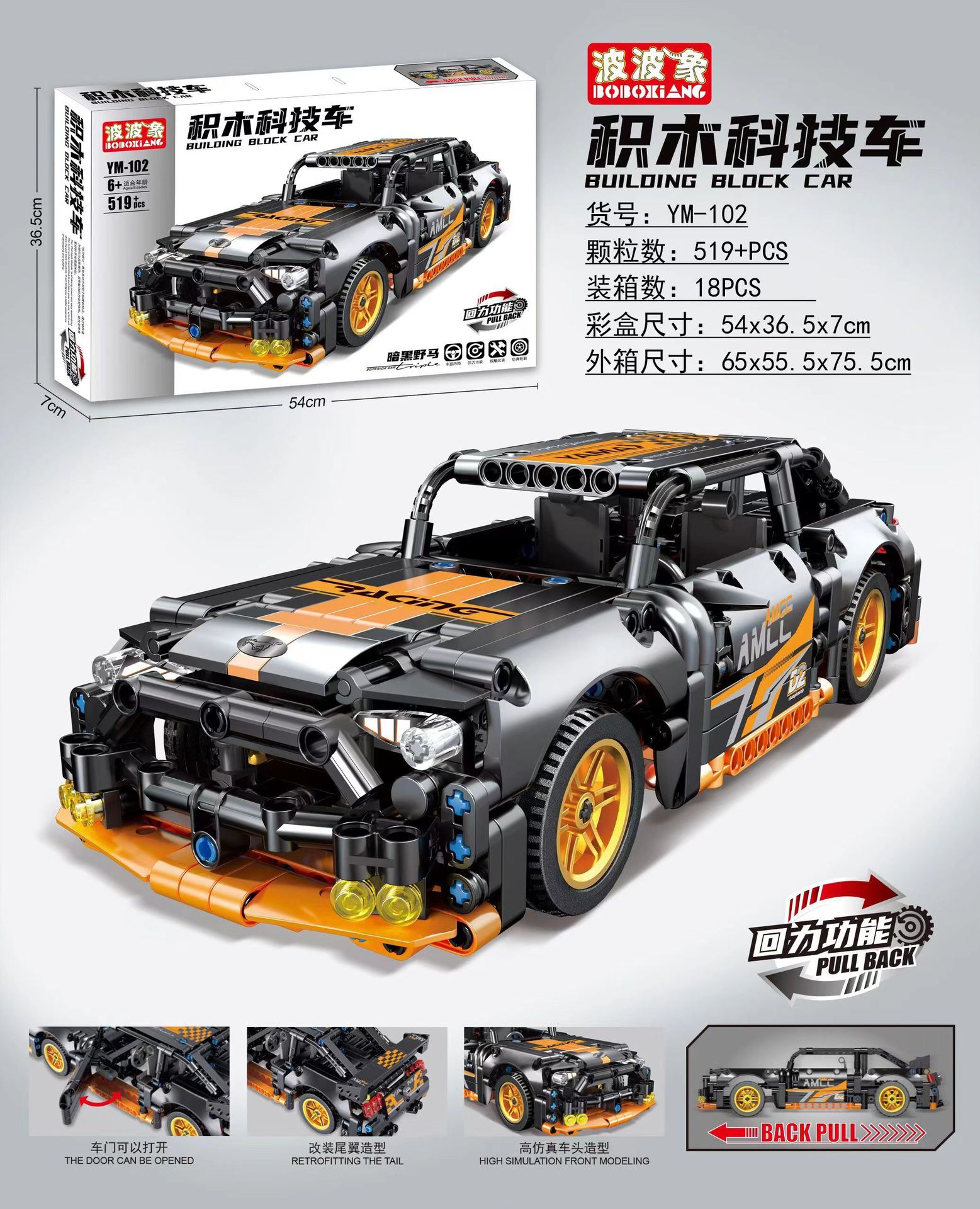 • 1:18 풀백 자동차 Baoshi (사이버 펑크) 컨테이너 판 540PCS