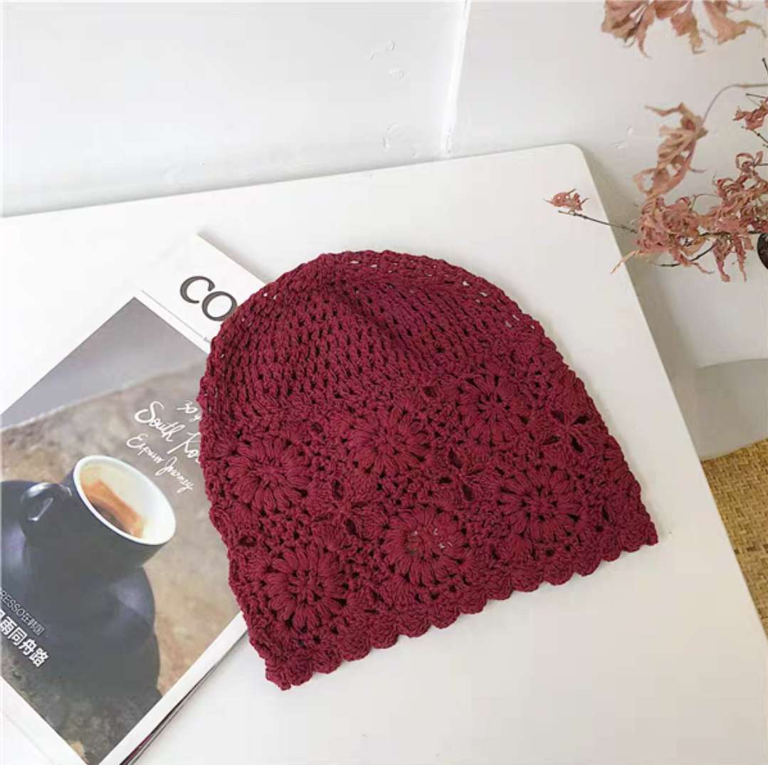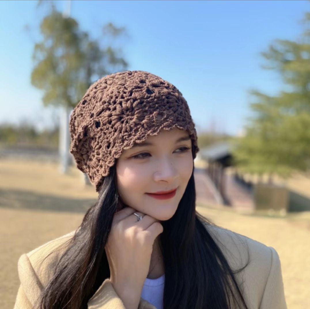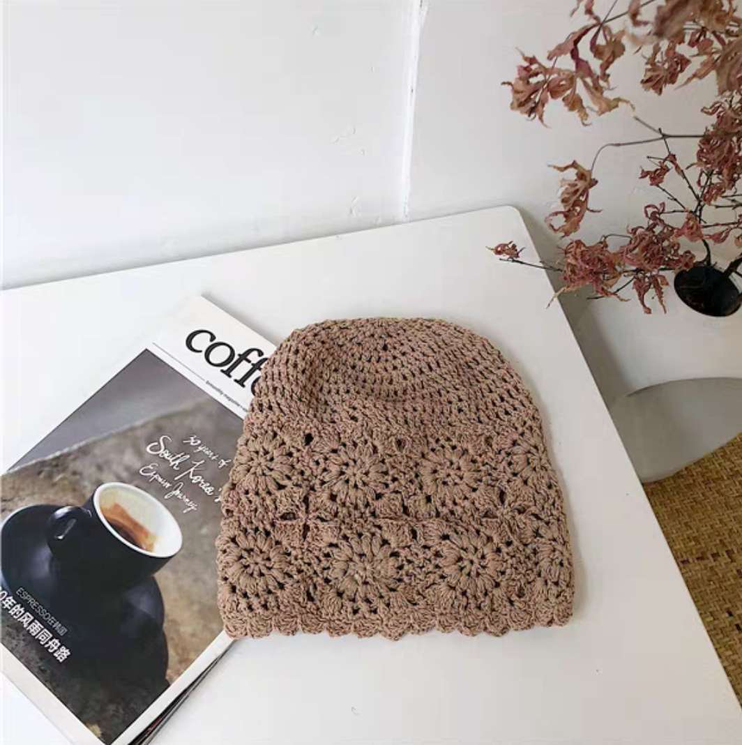 얇은 중공 패션 수제 후크 모자 여성용 꼰 니트 모자 여성용 봄과 여름 순면 후드 모자 트렌디