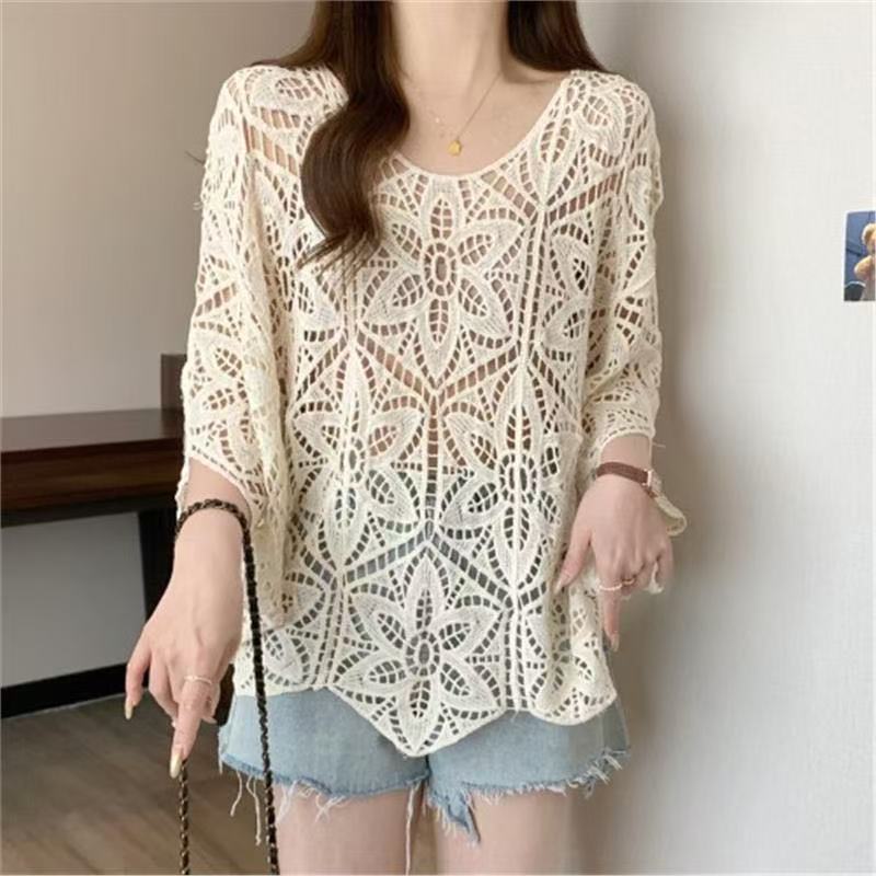 쇼트 탑 여성의 봄과 여름 틈새 새로운 패션 시대 감소 V 넥 할로우 에어컨 니트 셔츠 긴 소매 카디건 재킷