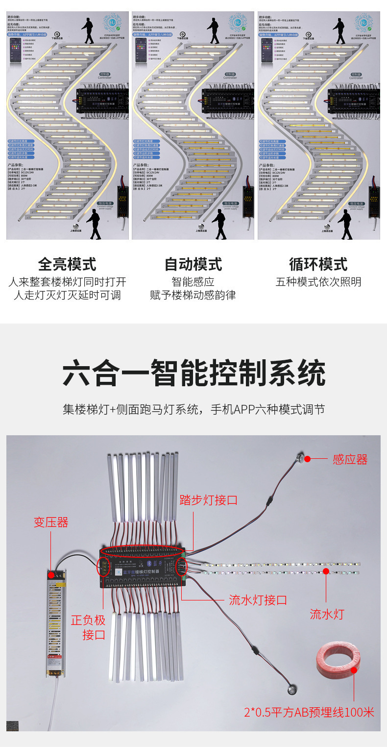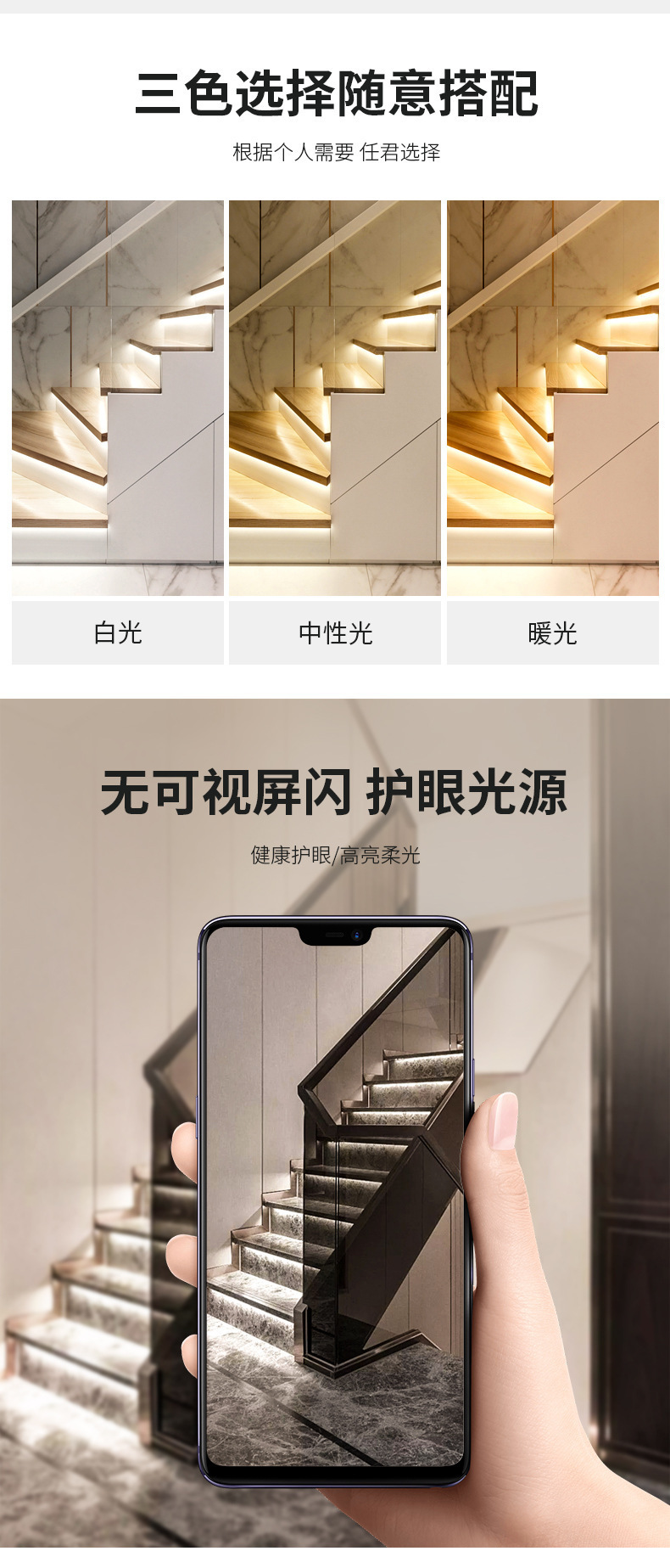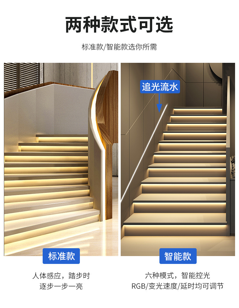 인터넷 유명 인사 계단 계단 빛 지능형 추격 가벼운 말 흐르는 물 빛 방수 스텝 라이트 바 led 라인 유도 빛