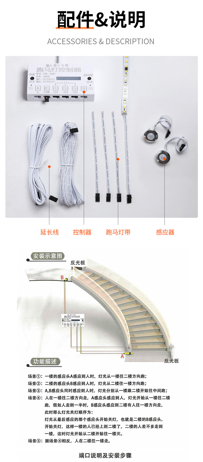 인터넷 유명 인사 계단 계단 빛 지능형 추격 가벼운 말 흐르는 물 빛 방수 스텝 라이트 바 led 라인 유도 빛스토어 가기