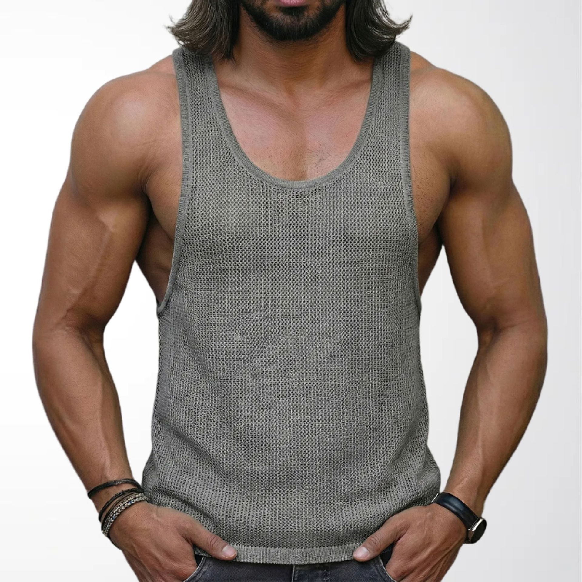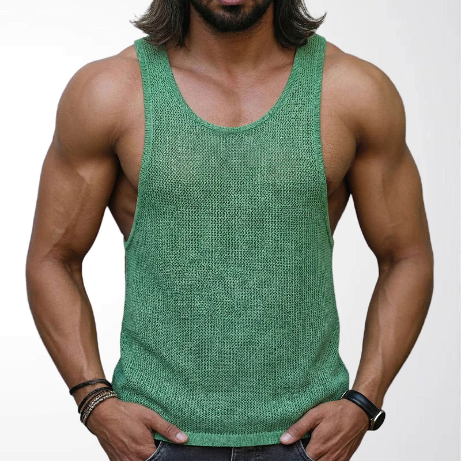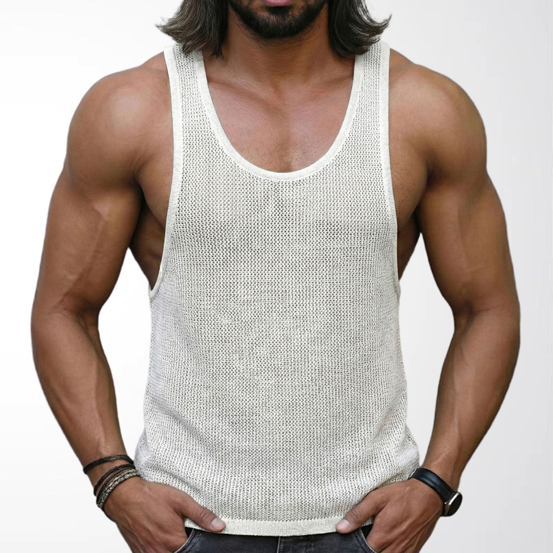 아마존 대외 무역 남자의 여름 새로운 흰색 바닥 스웨터 느슨한 피트니스 스포츠 조끼 SY0111