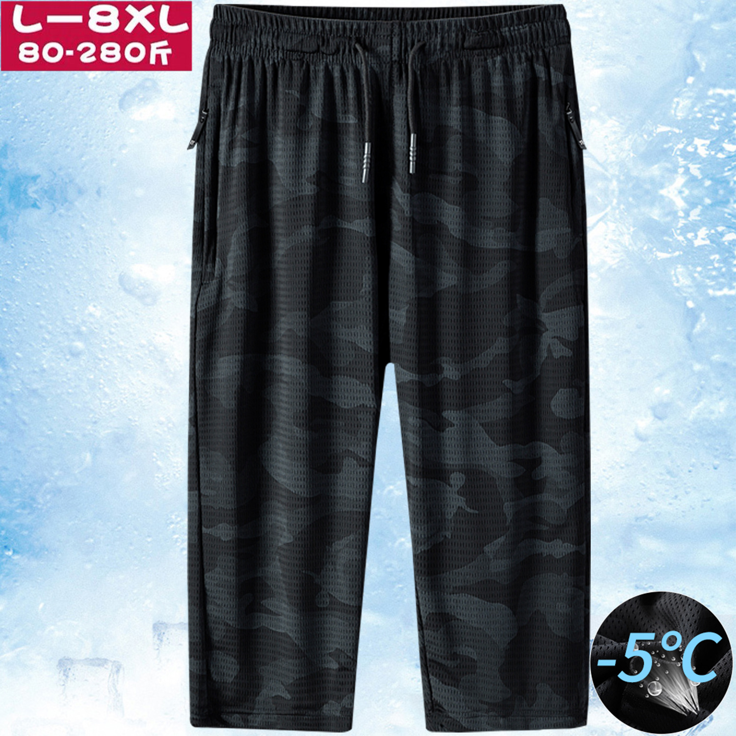 스포츠 캐주얼 통기성 메쉬 속건 반바지 남성용 플러스 사이즈 느슨한 탄성 스트레이트 러닝 여름 크롭 팬츠