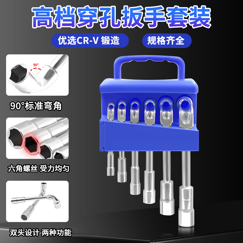 • 跨境外贸高档穿孔扳手套装双头L型六角烟斗扳手弯头镜面修车工具26.39折扣价:26.39