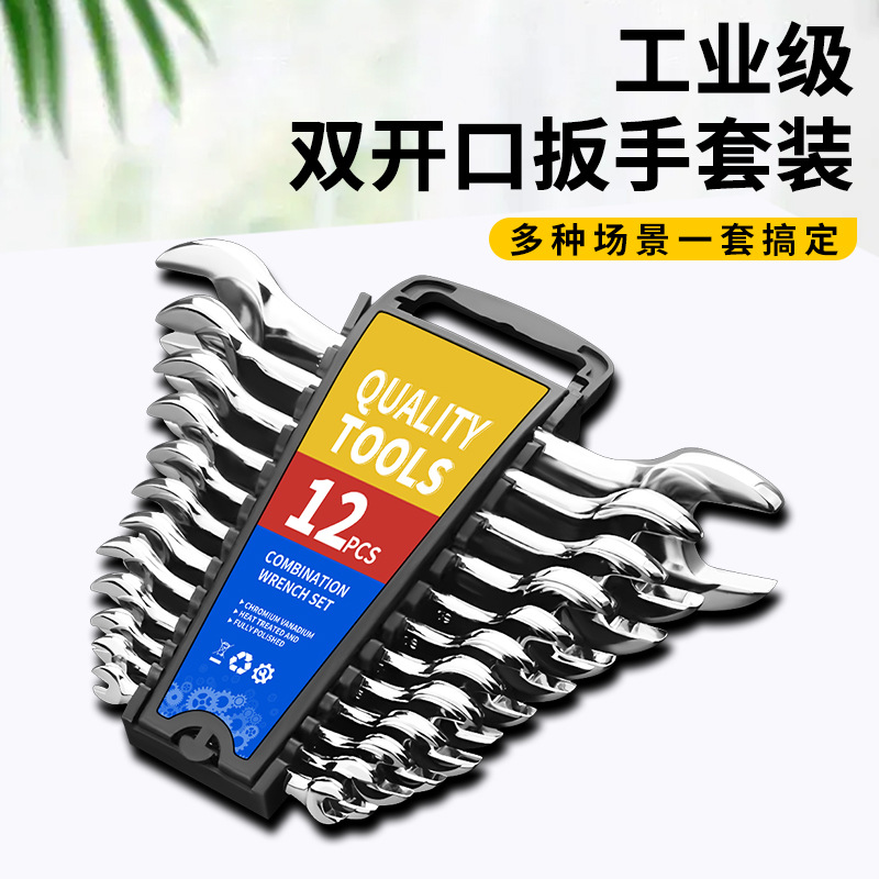 • 正品铬钒钢双开口扳手套装多规格双头12件套10开口组套呆扳手全套0.8折扣价:0.8