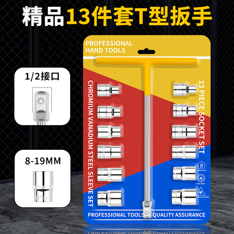 • 精品13件套装T型套筒扳手汽车修理工具套装1/2内六角套筒组合大飞21.33折扣价:21.33