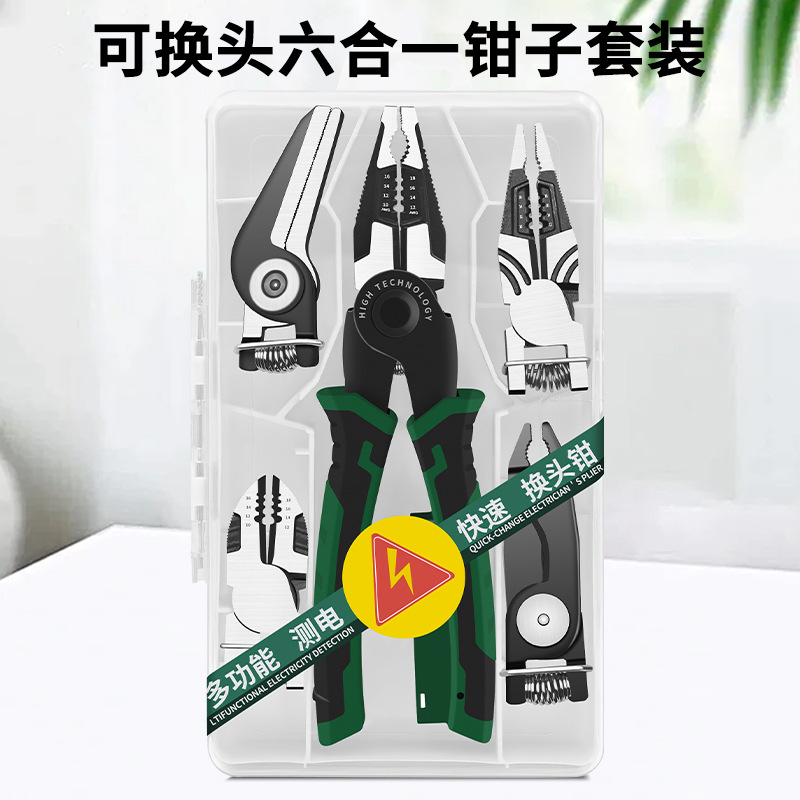 • 外贸可换头六合一多功能钳子套装高硬度电工专用剪线压线老虎钳子56.5折扣价:56.5