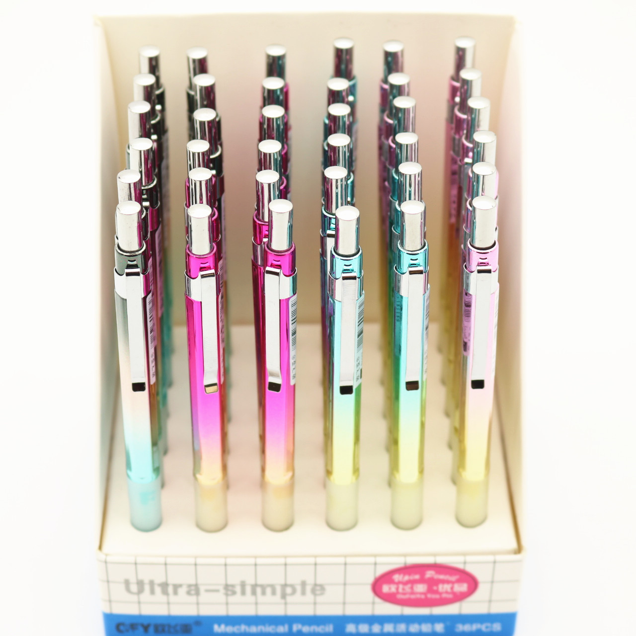 도매 Ofeiya 0226 가죽 케이스 자동 연필 학생 문구가있는 다채로운 활동 연필 금속 질감스토어 가기