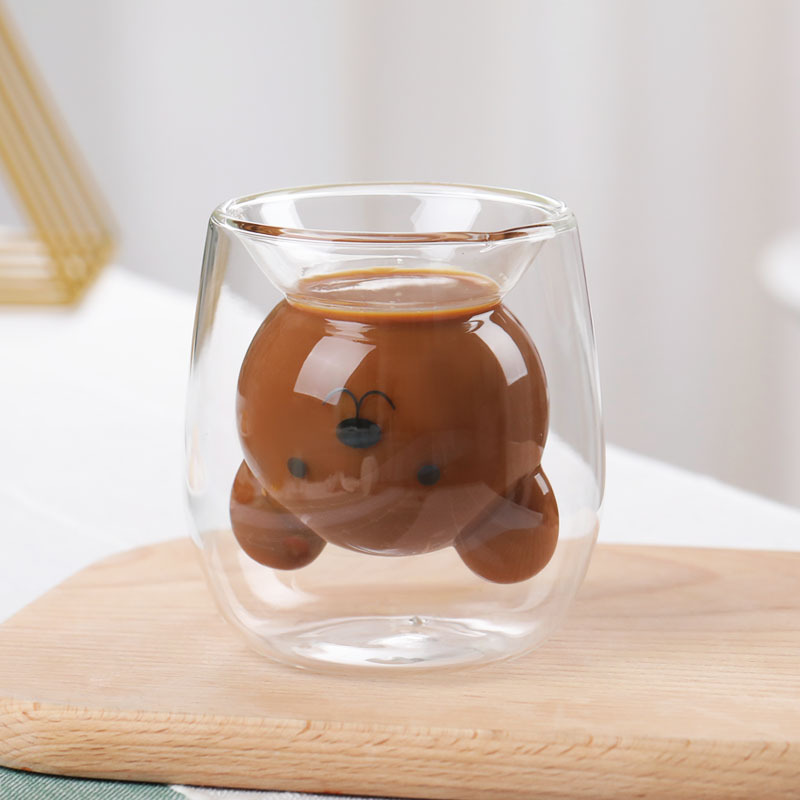 곰 더블 레이어 컵 유리 내열성 귀여운 크리 에이 티브 컵 고양이 더블 레이어 컵 만화 동물 새끼 고양이 컵 공급