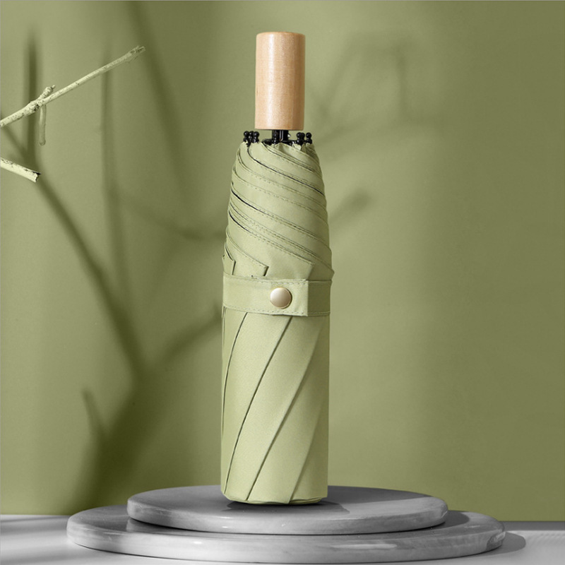 • 두꺼운 검은 고무 선 스크린 나무 손잡이 접는 우산-말차 그린