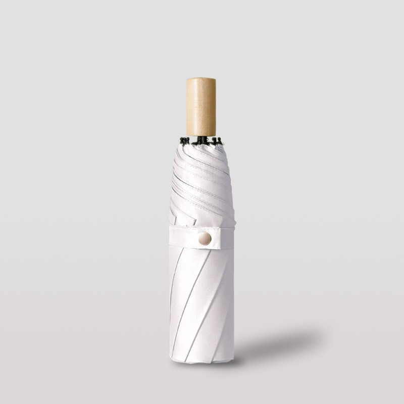 • 두꺼운 검은 색 고무 선 스크린 나무 손잡이 접는 우산-우유 화이트