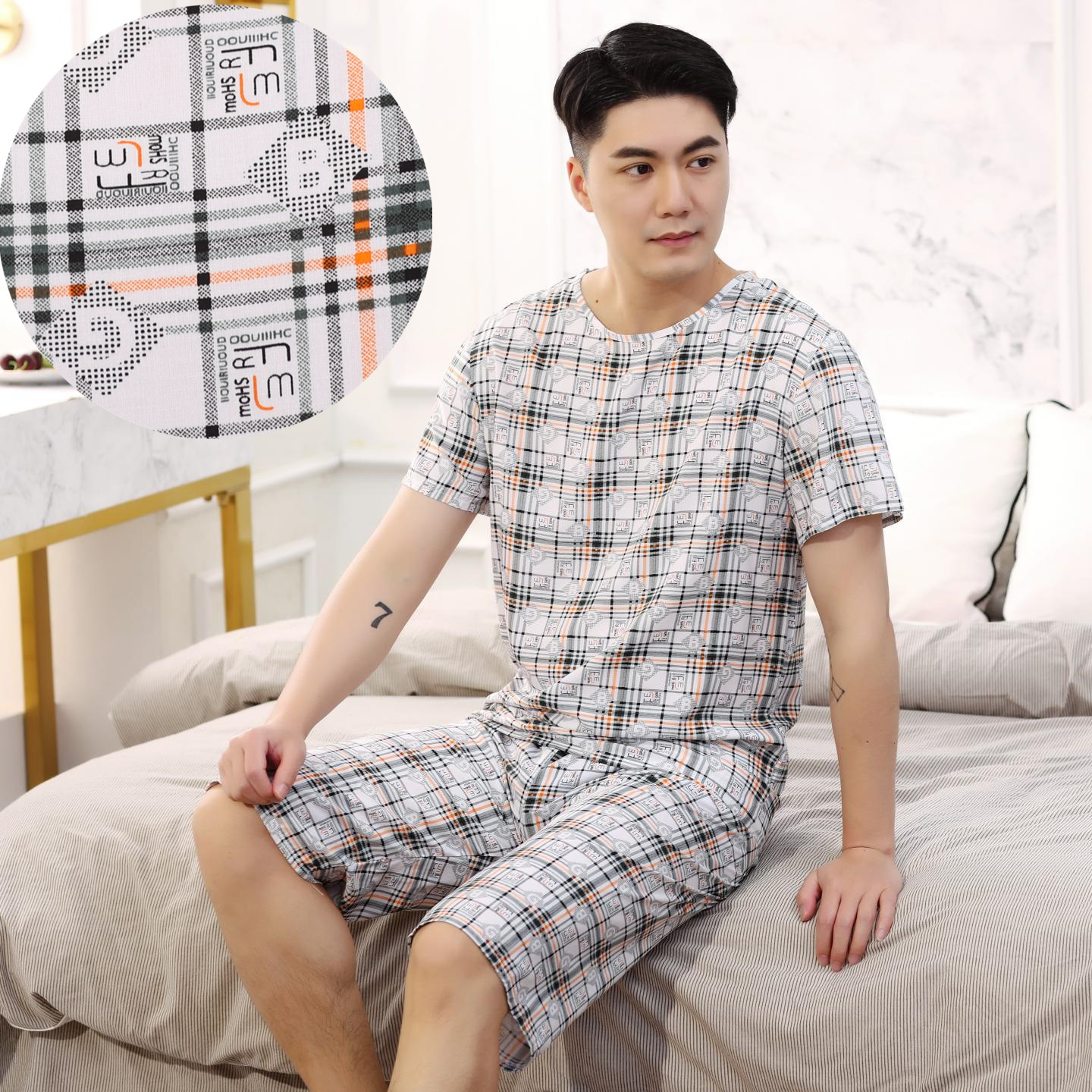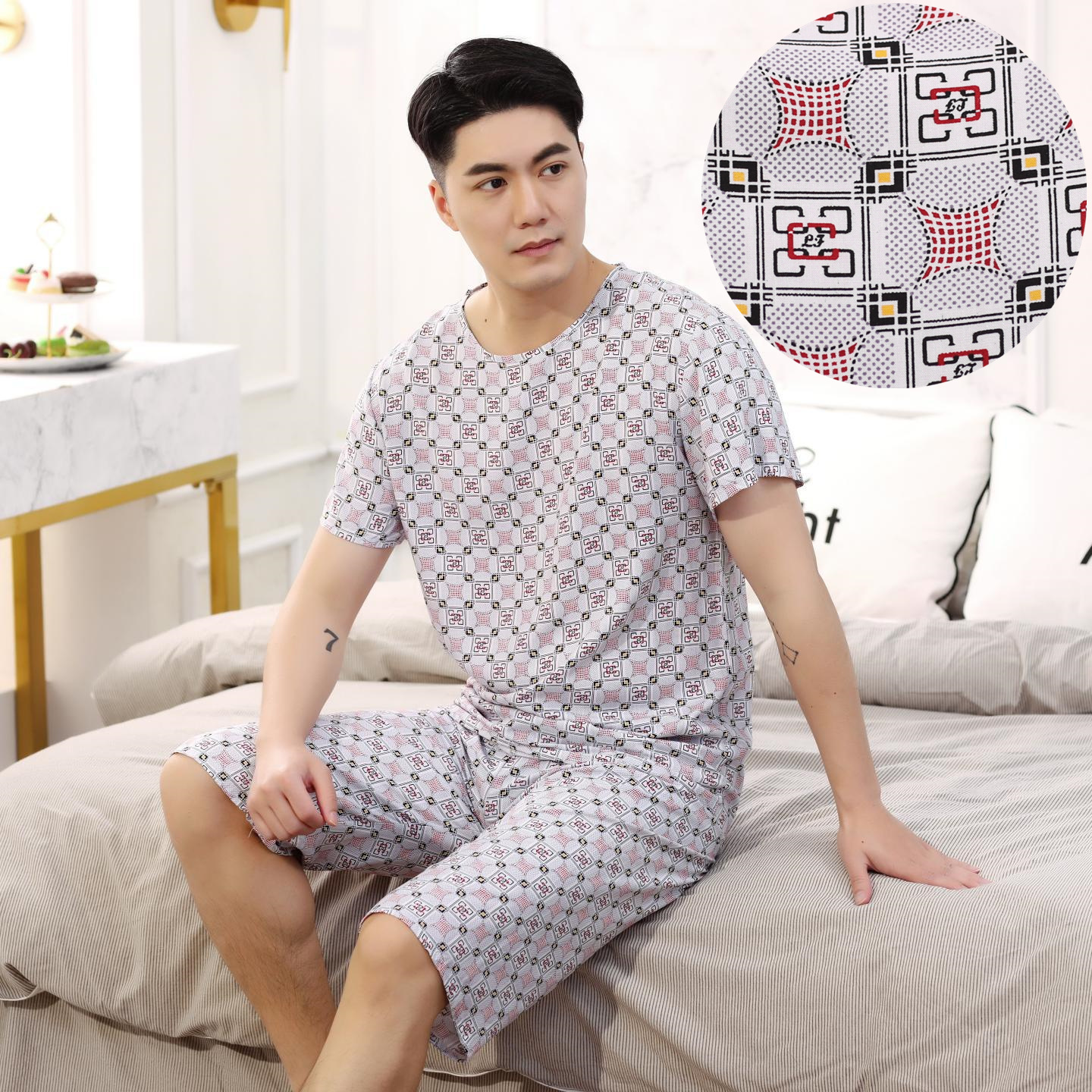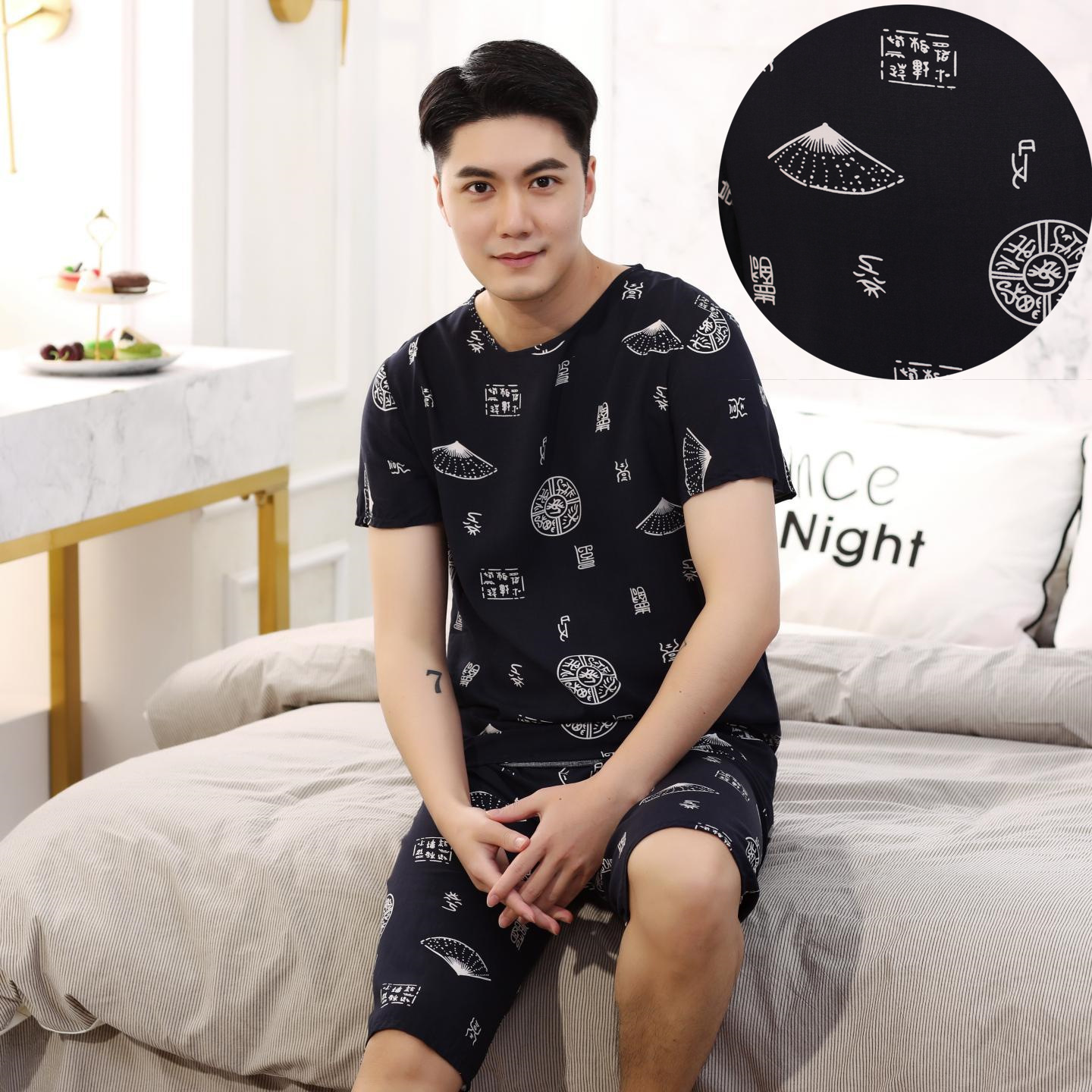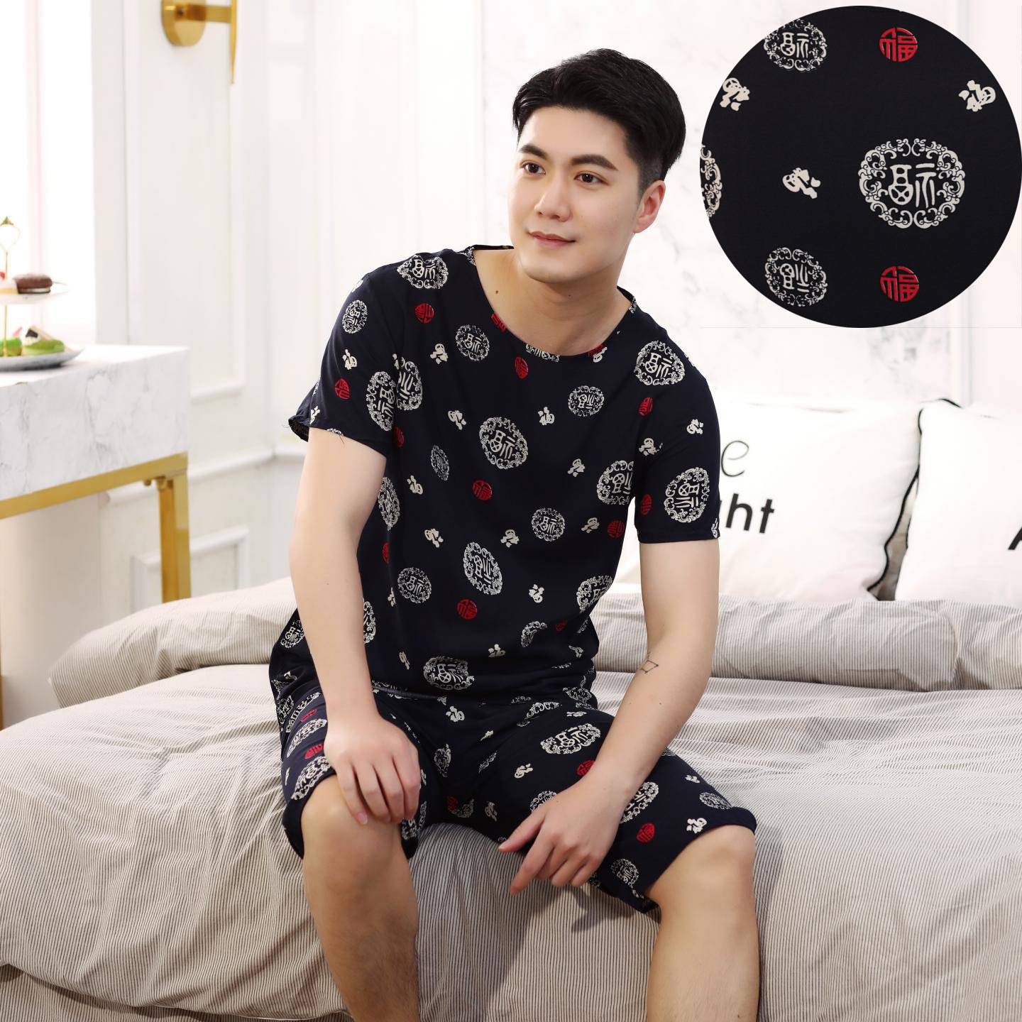 아빠를위한 여름 중년 및 노인 남성용 면 실크 잠옷 중년 및 노인 반팔 가정 의류 인공 얇은 면 세트스토어 가기
