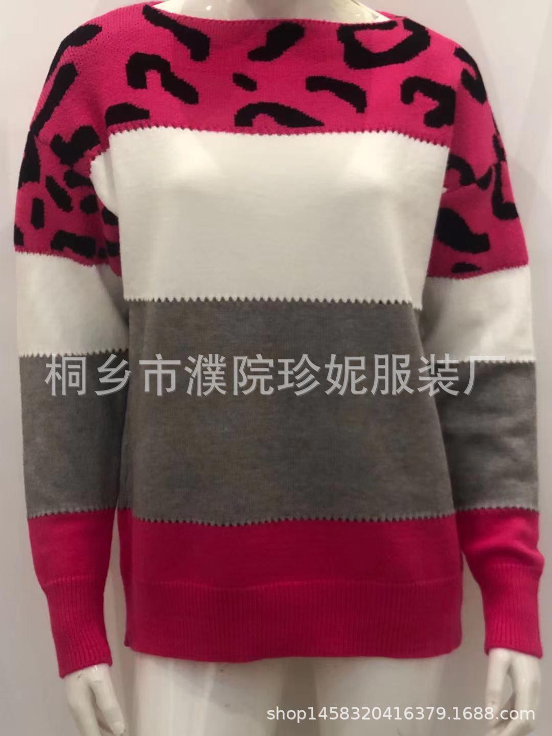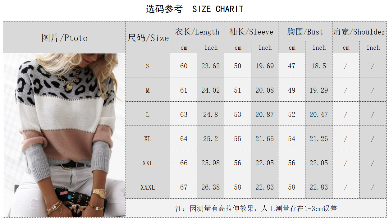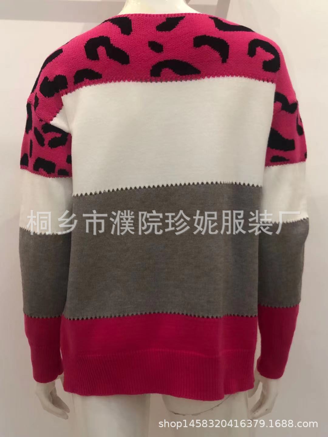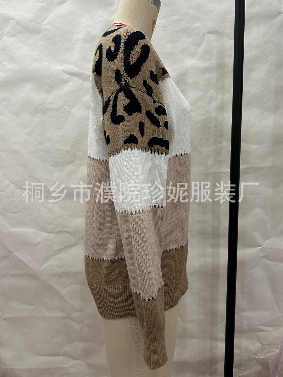 레오파드 컬러 매칭 라운드 넥 캐주얼 스웨터 가을과 겨울 새로운 크로스 보더 여성용 스웨터 여성용 긴팔 베이스 셔츠스토어 가기