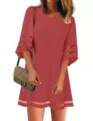 2021 새로운 아마존 폭발 소원 뜨거운 판매 숙녀 경적 소매 거즈 메쉬 바느질 A-라인 스커트 원피스 여성