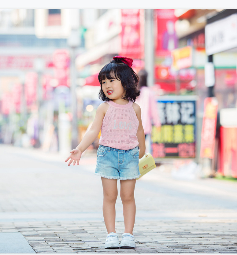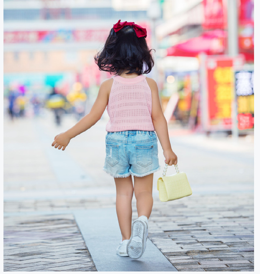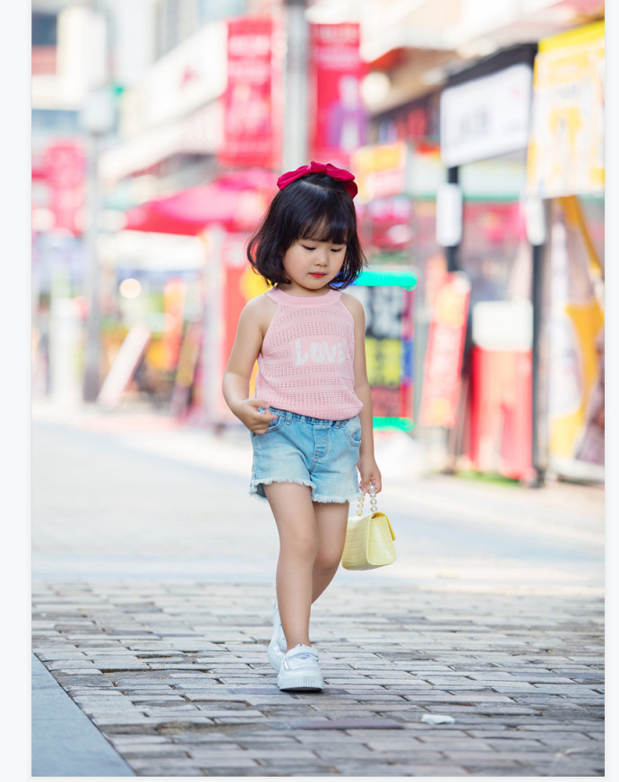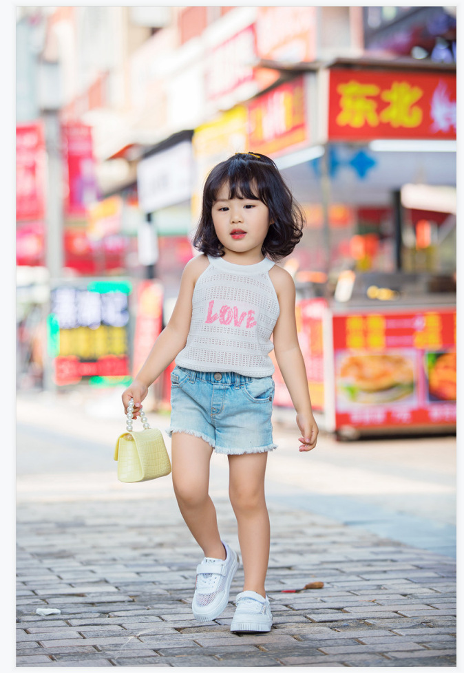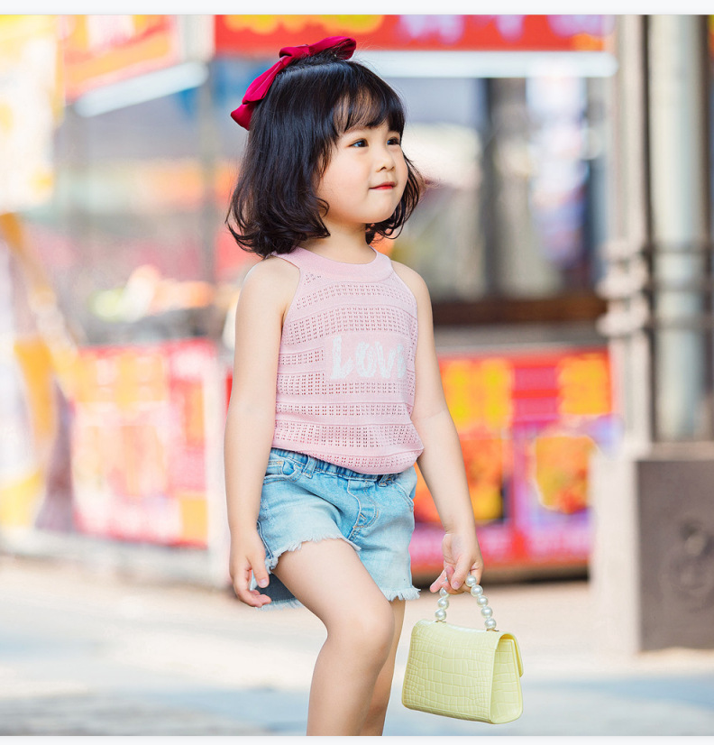여자 조끼 2025 여름 새로운 스타일 어린이 얼음 실크 조끼 아기 니트 멜빵 얇은 어린이상의스토어 가기