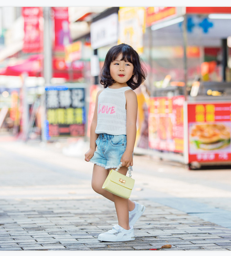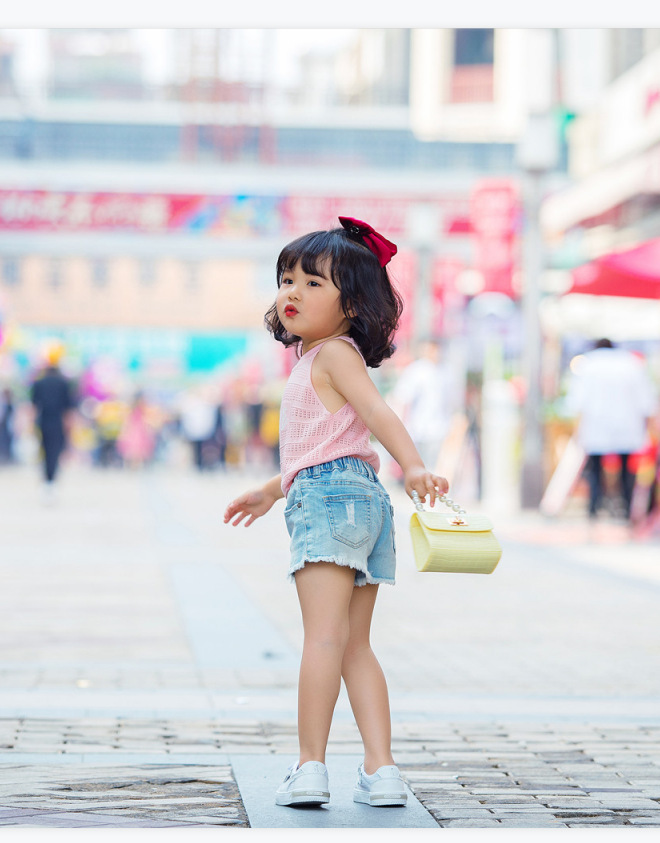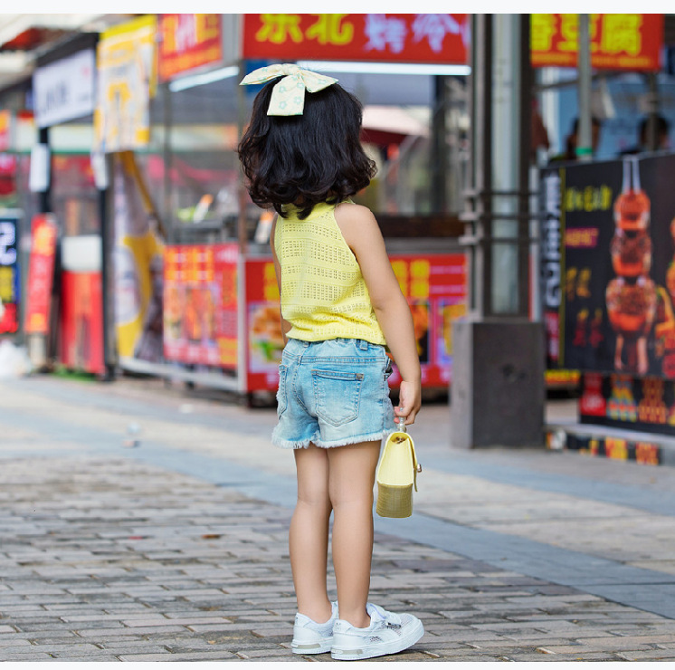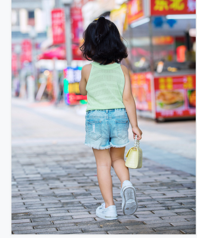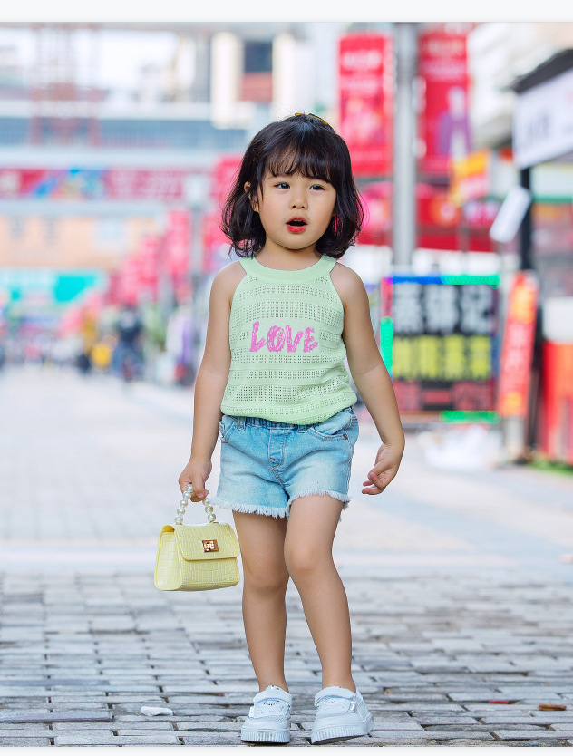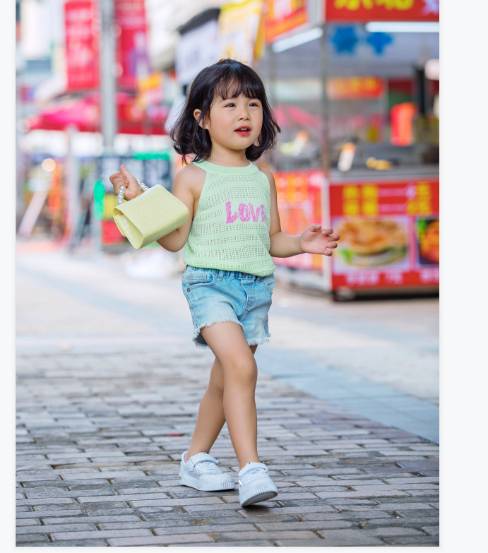 여자 조끼 2025 여름 새로운 스타일 어린이 얼음 실크 조끼 아기 니트 멜빵 얇은 어린이상의스토어 가기