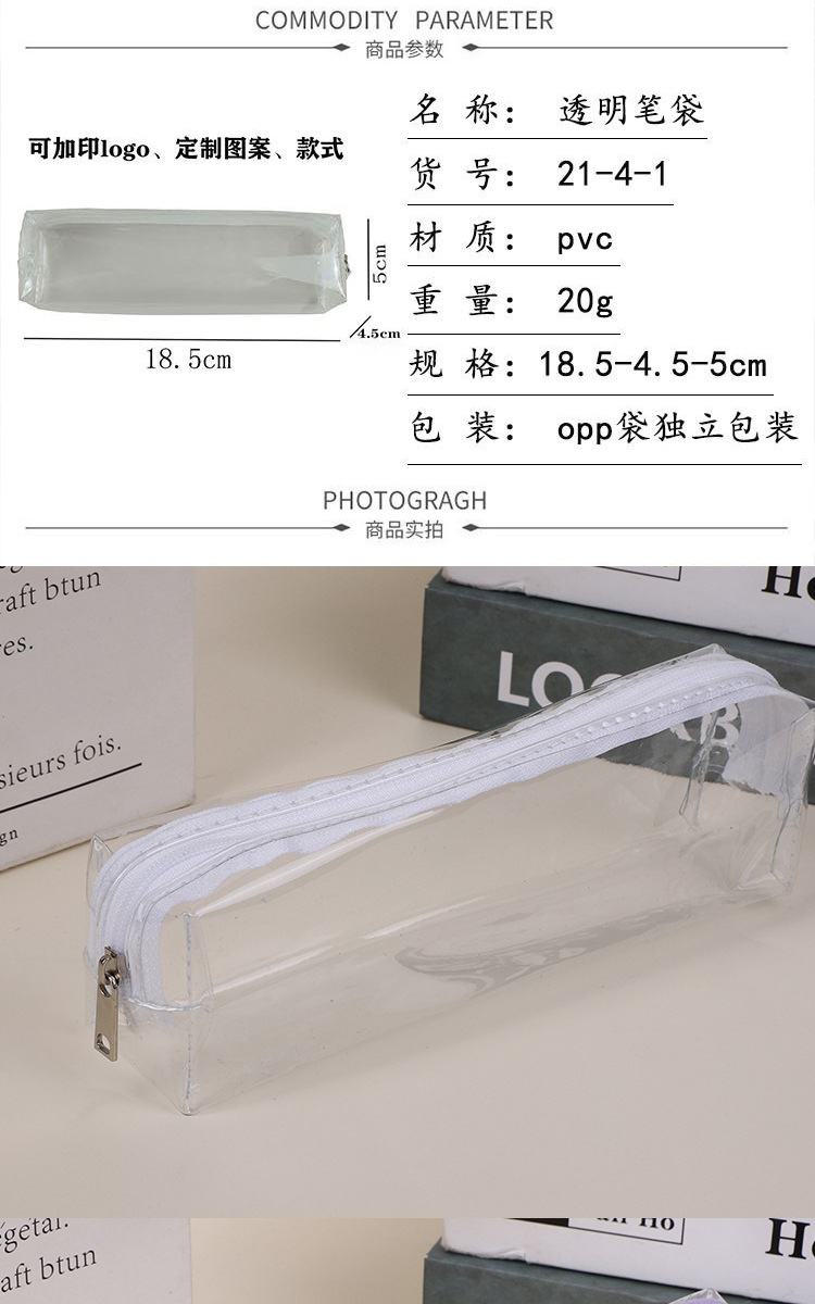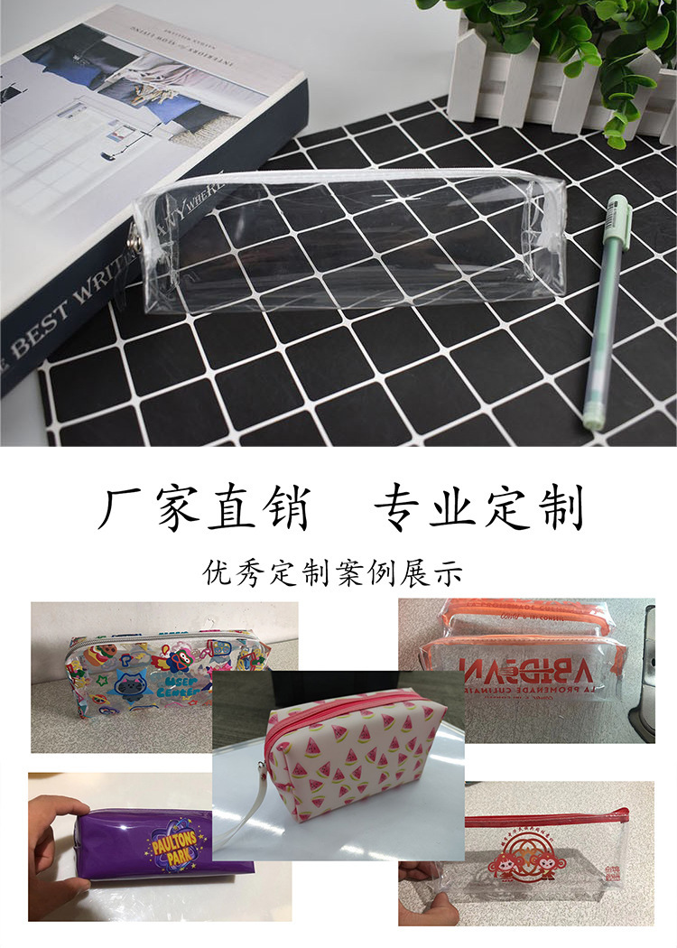일본과 한국 투명 미니멀 PVC 연필 가방 시험 특수 연필 가방 제조 업체 도매 인쇄 로고 광고 문구