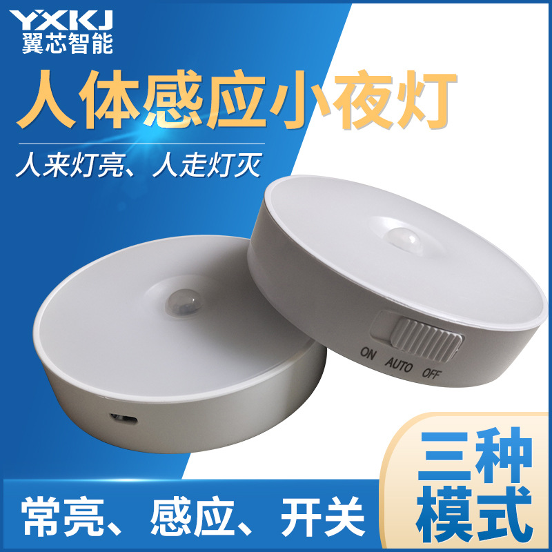 LED 인체 감지 야간등 충전식 복도 침실 침대 옆 선물등 스마트 원형 캐비닛 조명