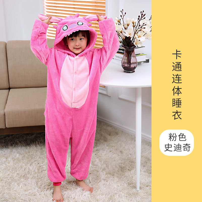 제조업체는 플란넬 만화 핑크 스티치 만화 결합 동물 변기 버전 잠옷 커플 홈웨어를 공급합니다.스토어 가기