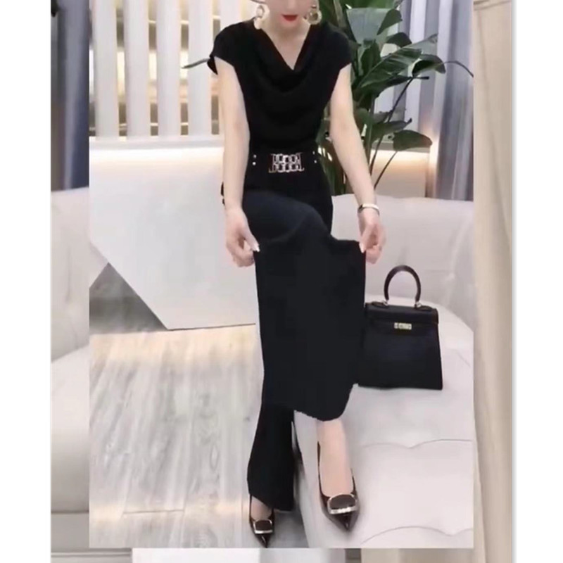 9396 Daai Mei Yuan 2025 새로운 여름 한국 패션 정장 푸시 칼라 슬리밍 셔츠 여성용 와이드 팬츠스토어 가기