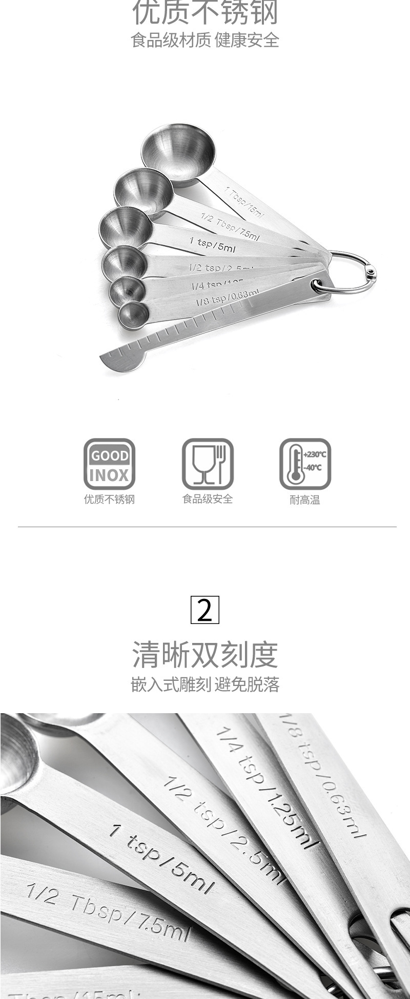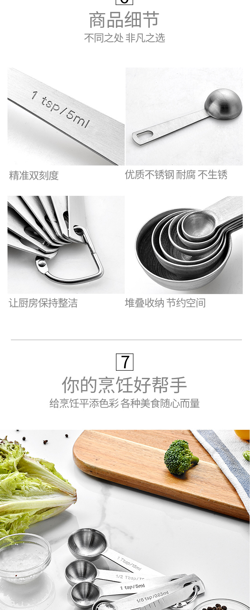 가정용 스테인레스 스틸 계량 스푼 7 개 세트 스케일 베이킹 측정 스푼 슈트 주방 조미료 측정 스푼 슈트스토어 가기