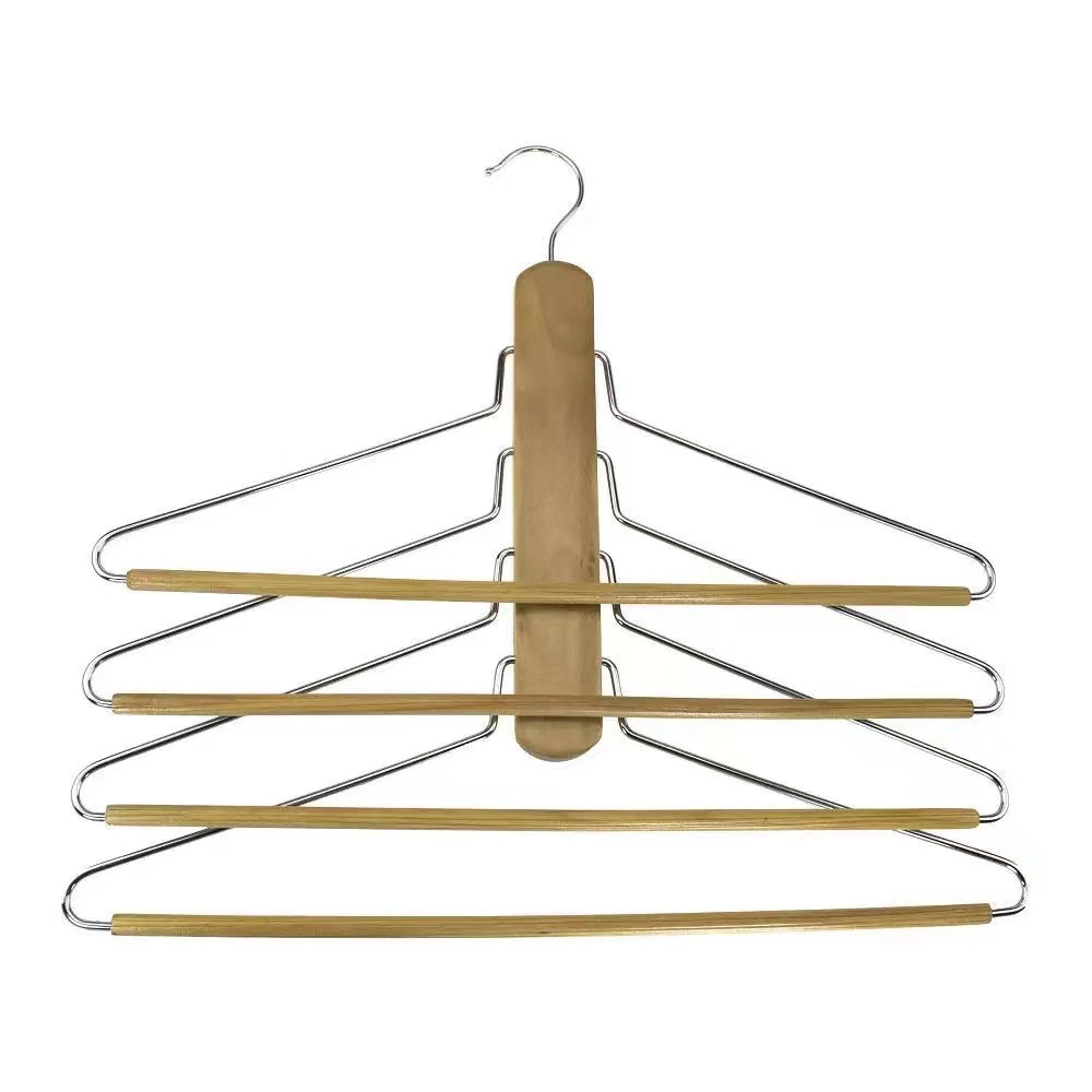 다층 솔리드 우드 의류 랙 다기능 보관 의류 지원 나무 4 층 바지 랙 리얼 컬러 바니시 옷장 옷걸이