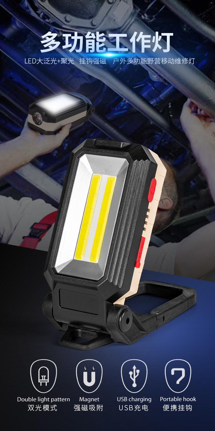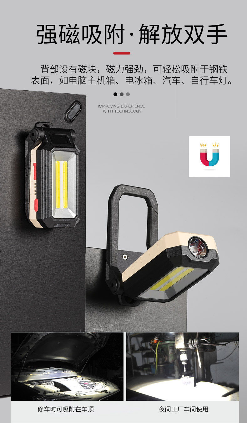 자석 다기능 COB 강한 빛 손전등 크로스 보더 새로운 LED 작업 자동 수리 등 USB 충전 수리 등