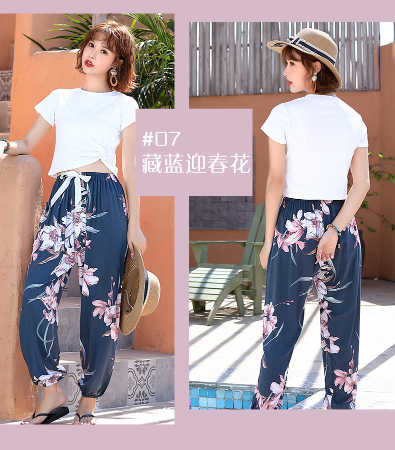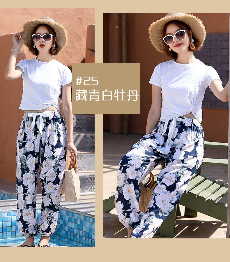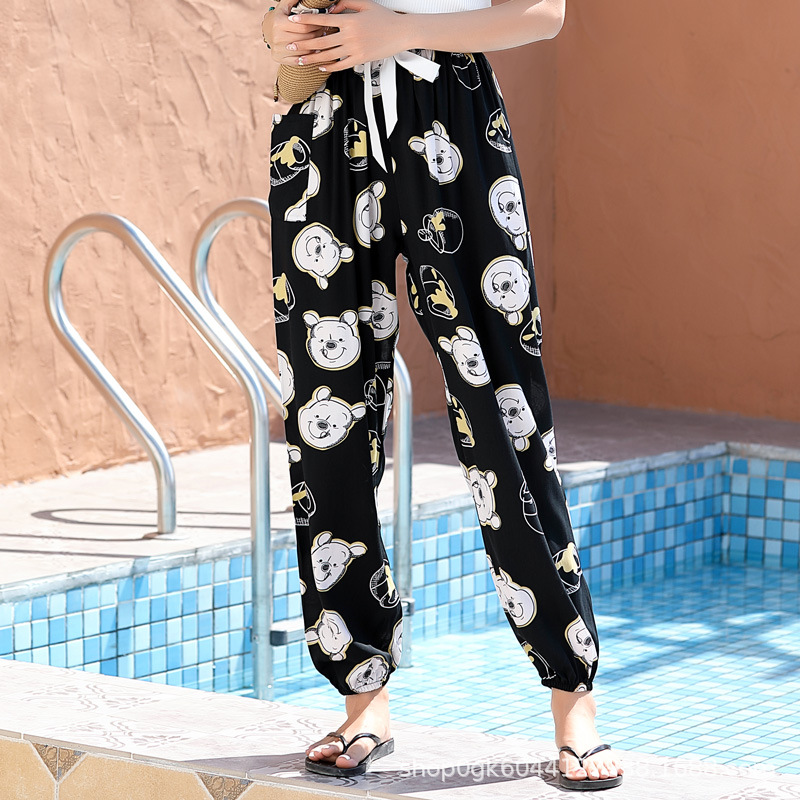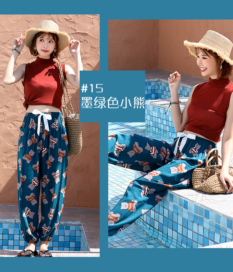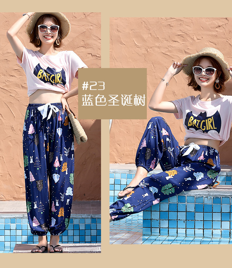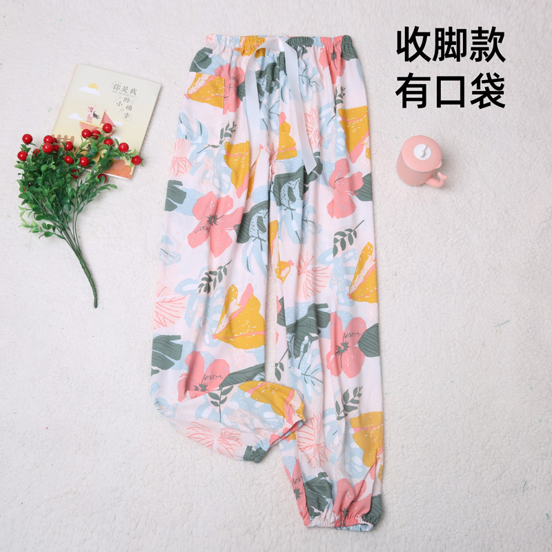 인기있는 스타일 코튼 실크 파자마 바지 여성 여름 대형 인공 면화 비치 안티 모기 바지 봄과 여름 새로운 스타일 여성 외부 착용 홈 바지스토어 가기