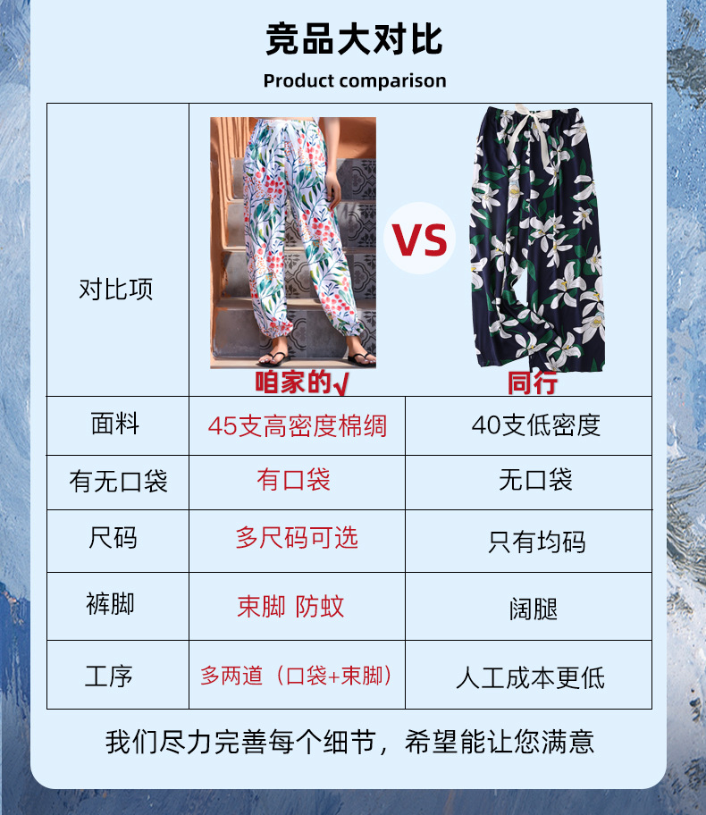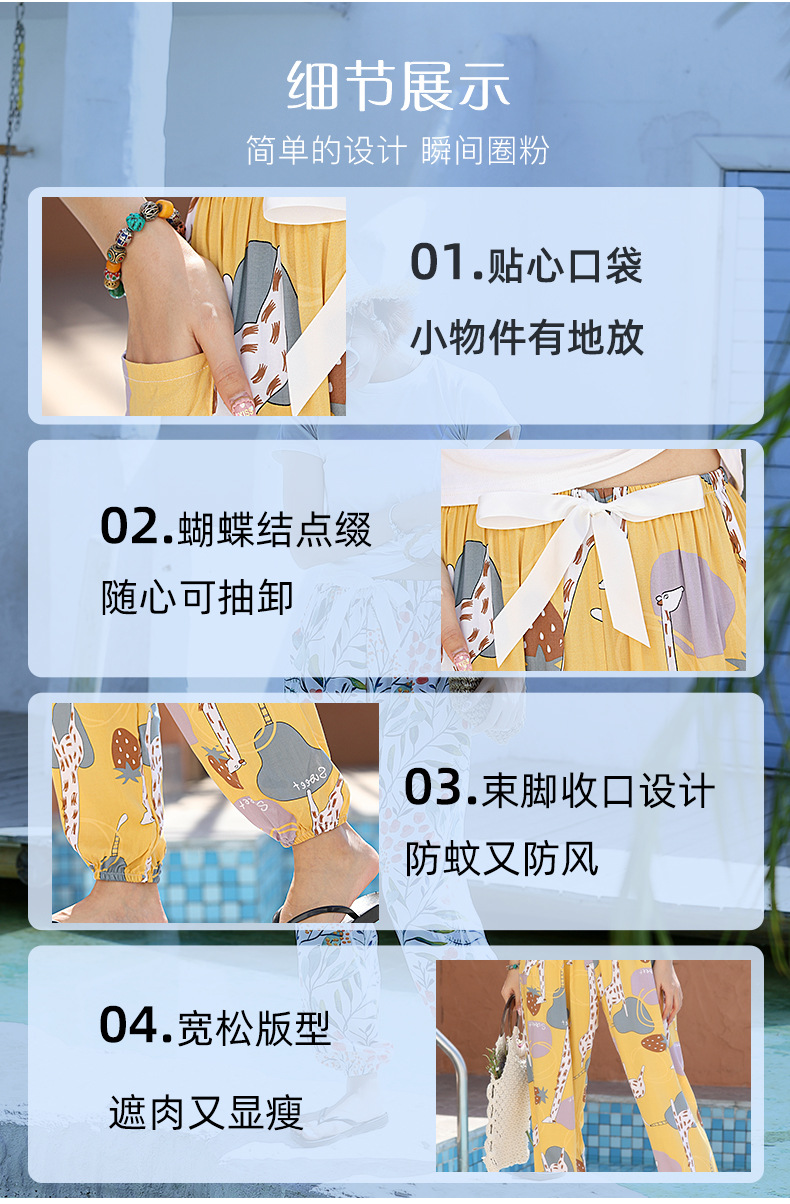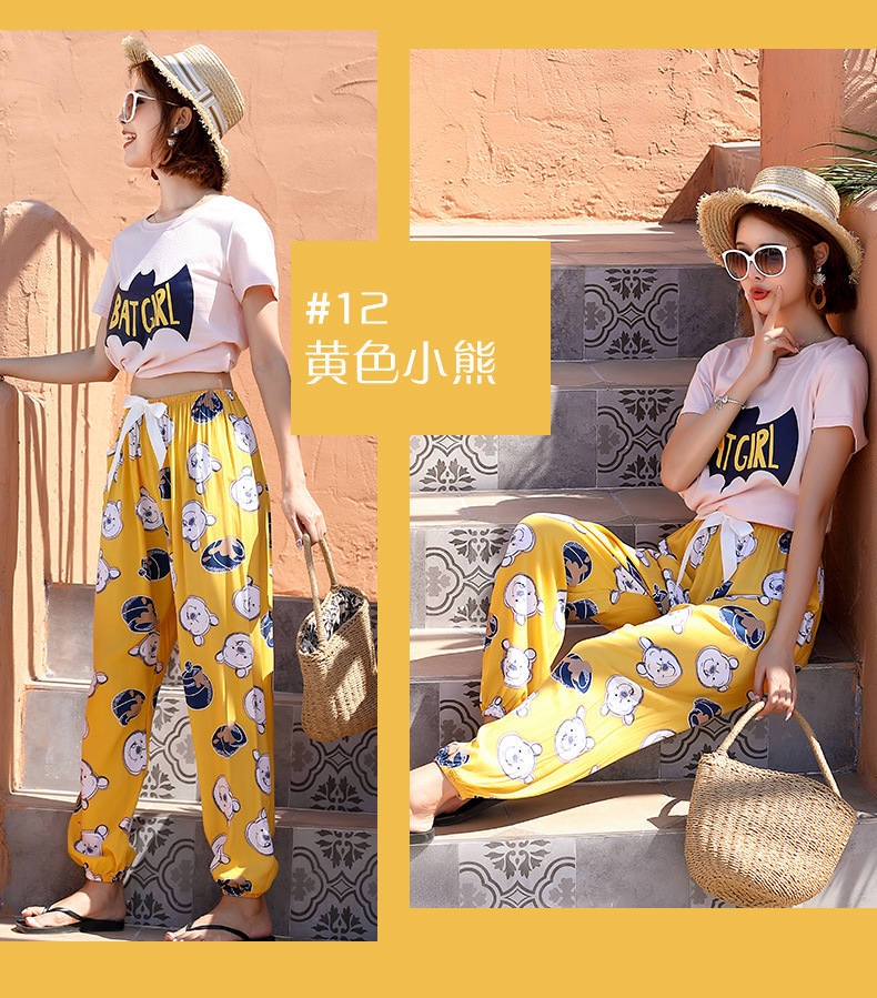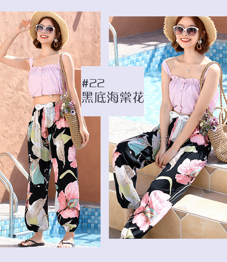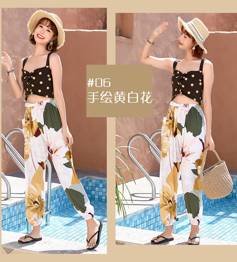 인기있는 스타일 코튼 실크 파자마 바지 여성 여름 대형 인공 면화 비치 안티 모기 바지 봄과 여름 새로운 스타일 여성 외부 착용 홈 바지스토어 가기