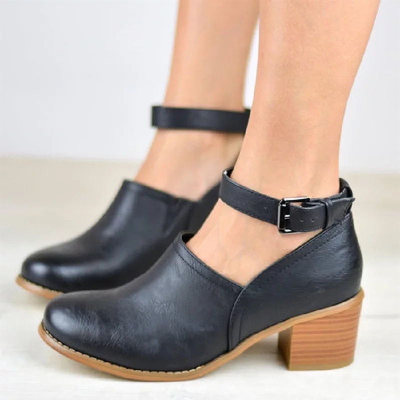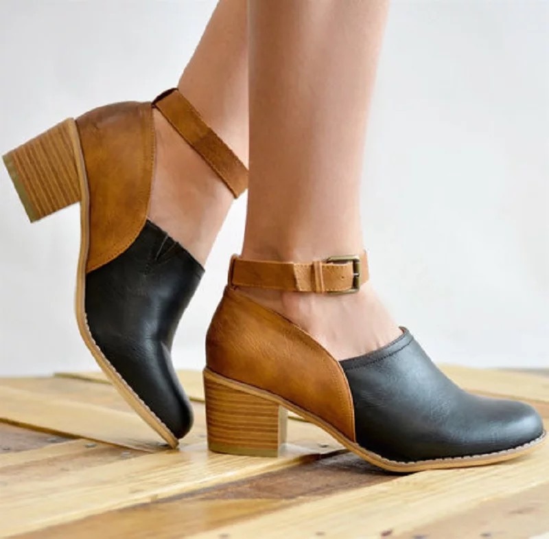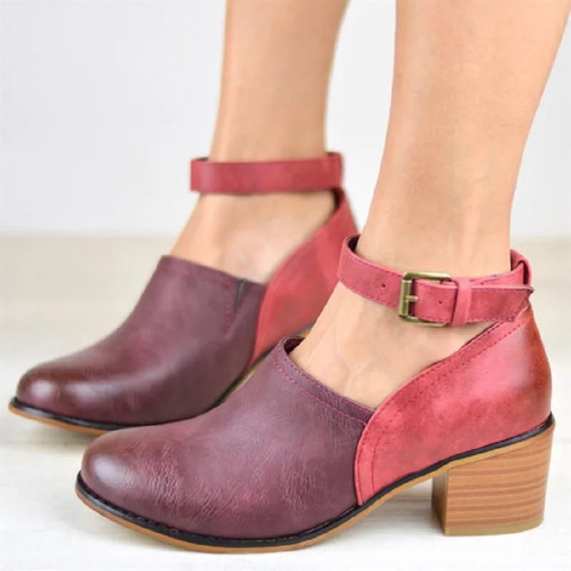 2021 봄과 여름 새로운 싱글 레이어 신발 벨트 버클 뾰족한 두꺼운 뒤꿈치 색상 매칭 여성 신발 40-43 플러스 사이즈 싱글 레이어 신발 하이힐스토어 가기