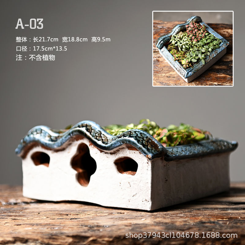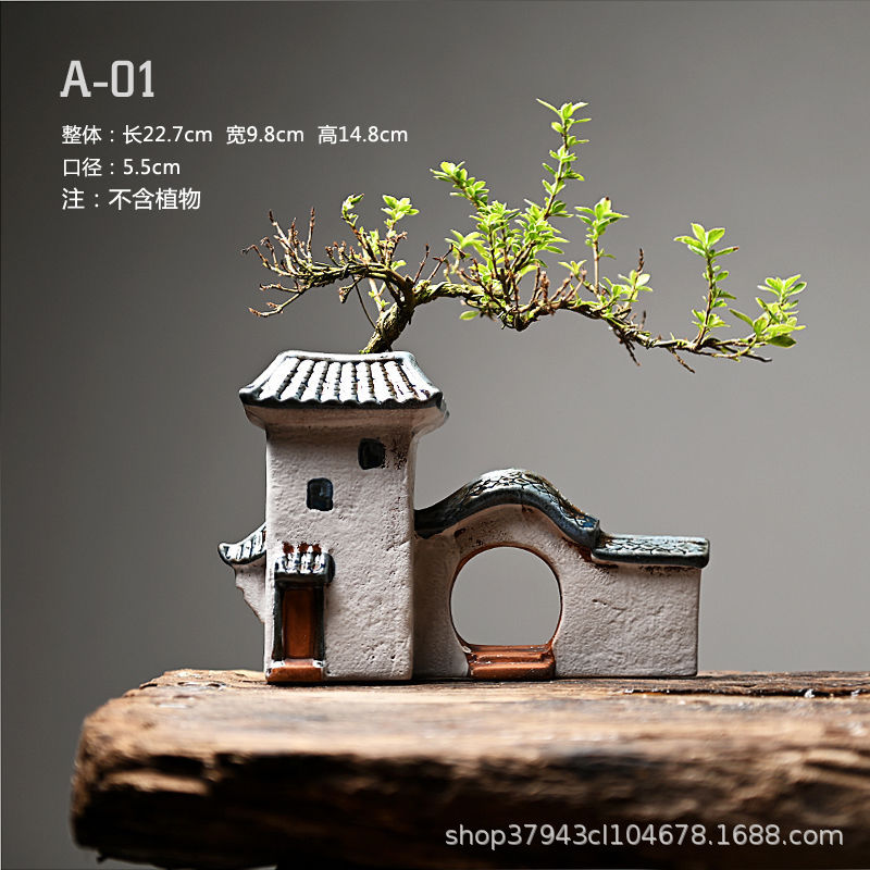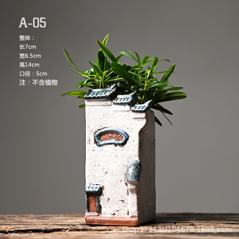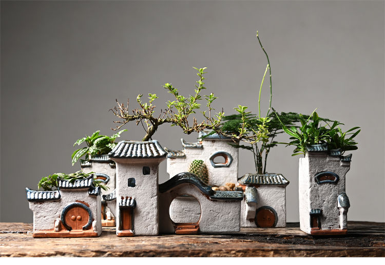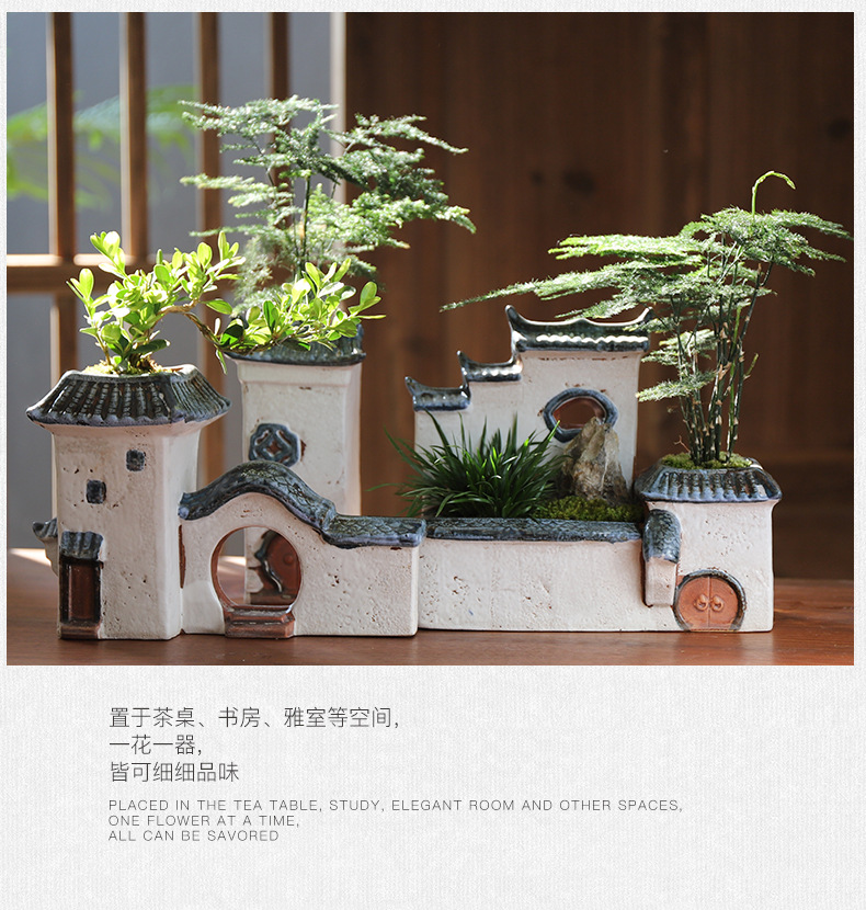 후이저우 스타일 하우스 세라믹 화분 어항 풍경 장식품 새로운 중국 스타일 모소 화분 창조적 인 사무실 녹색 식물 화분