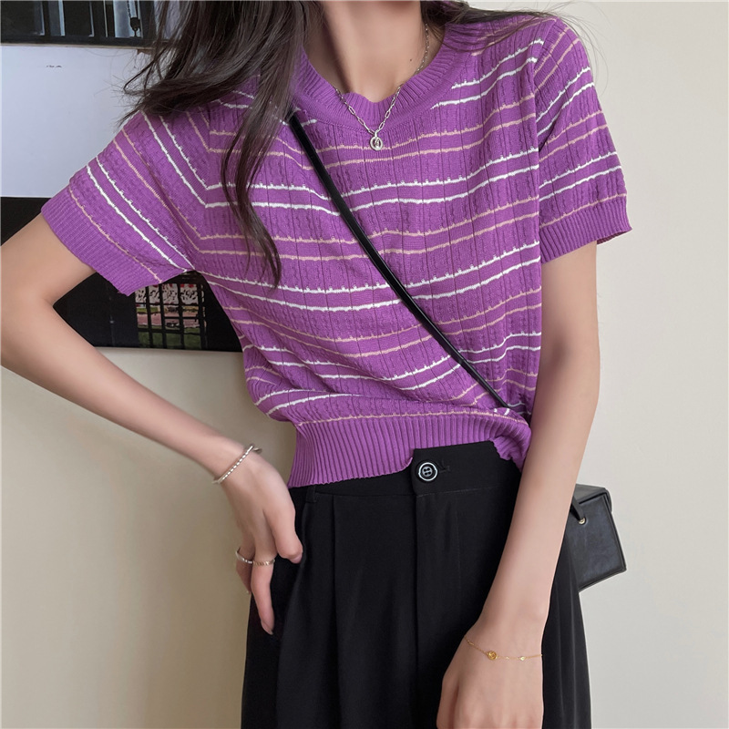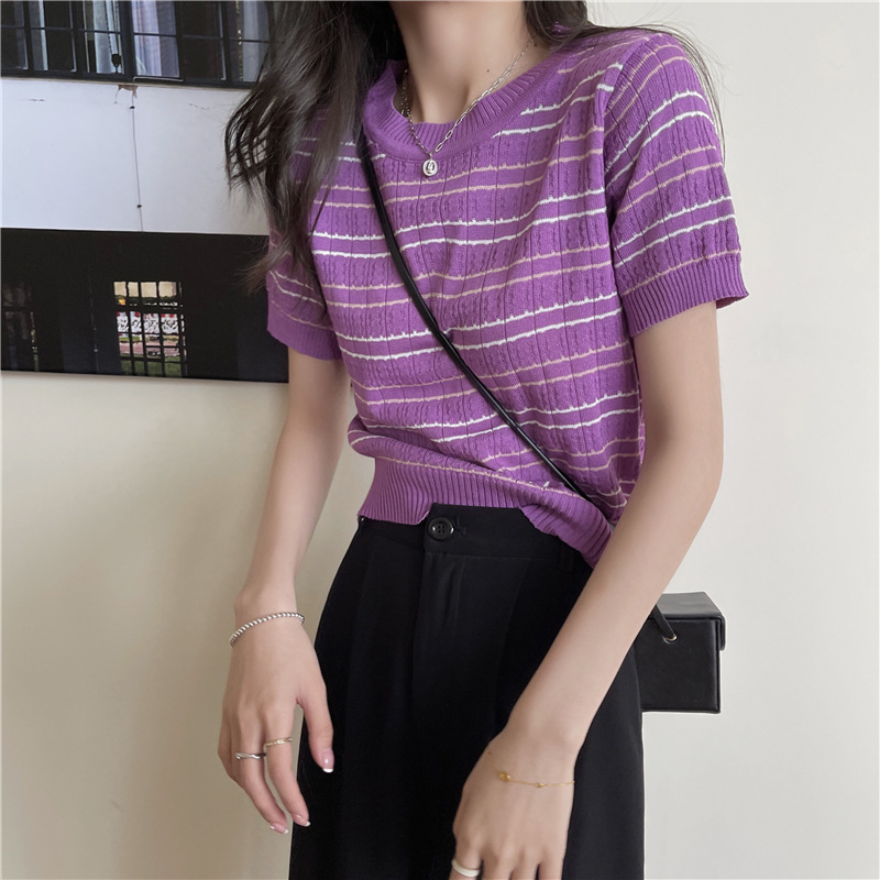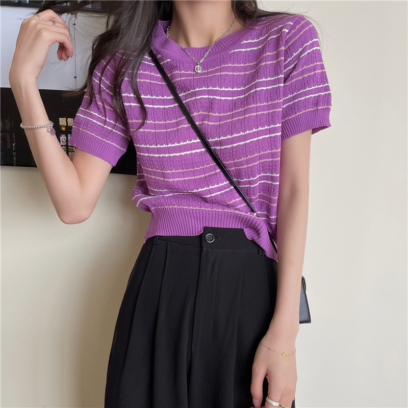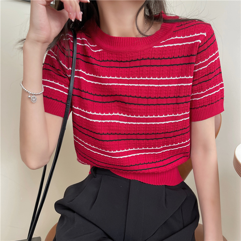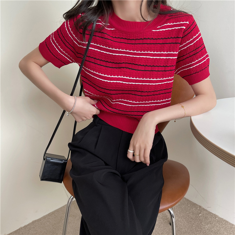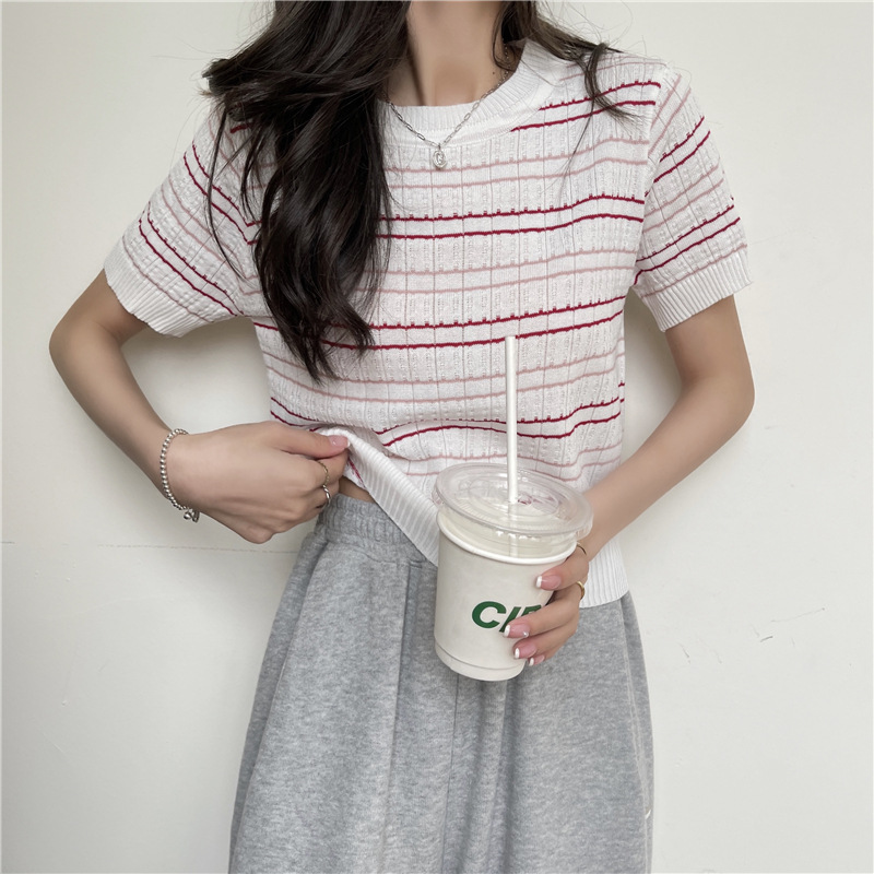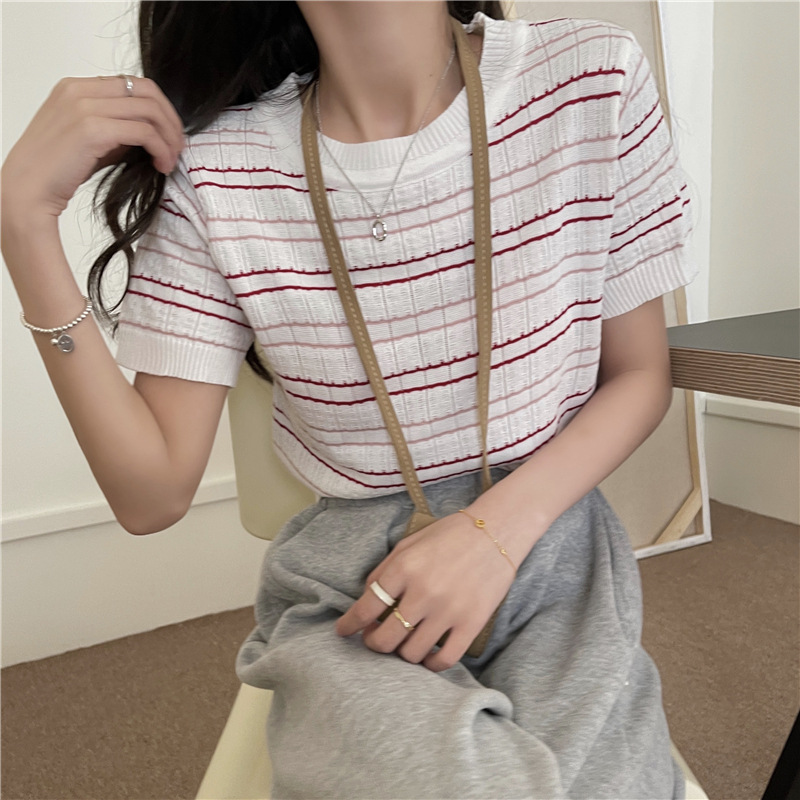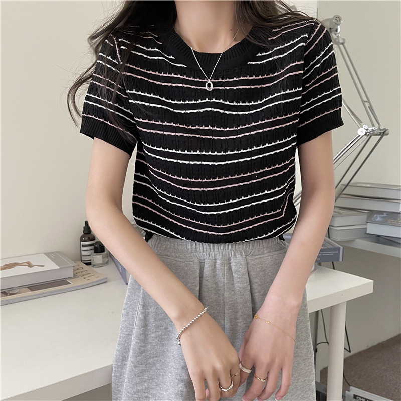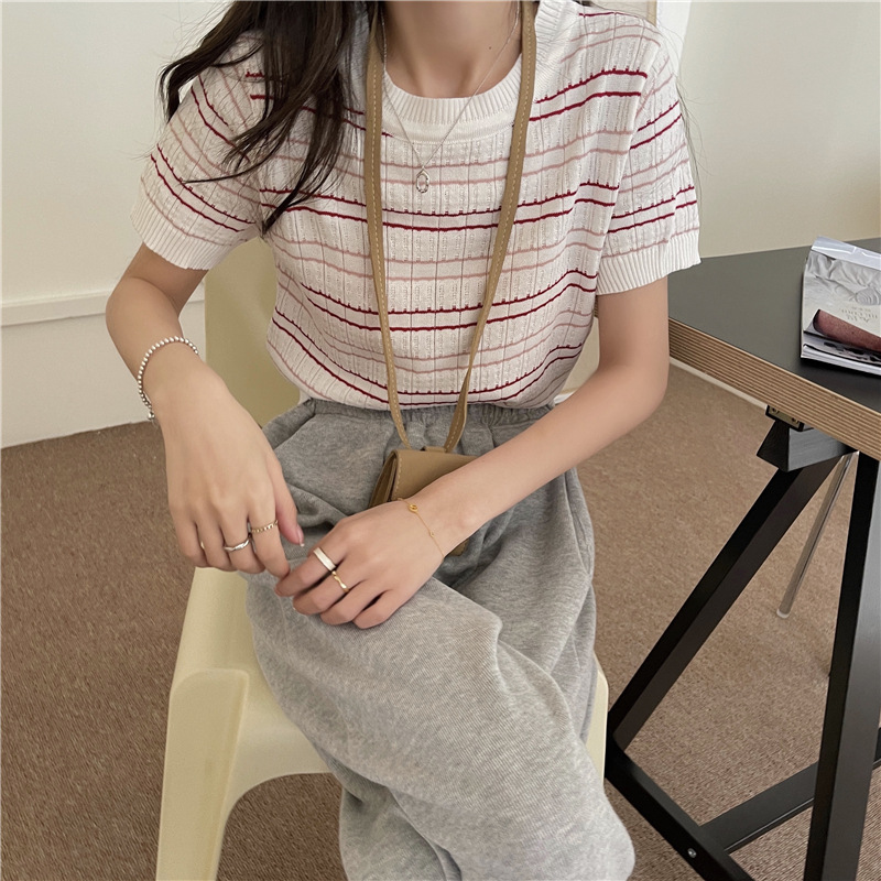 스웨터 슬림 여성 의류 2024 새로운 여름 바닥 셔츠 반팔 탑 작은 향기로운 달콤한 매력 스타일 트렌드