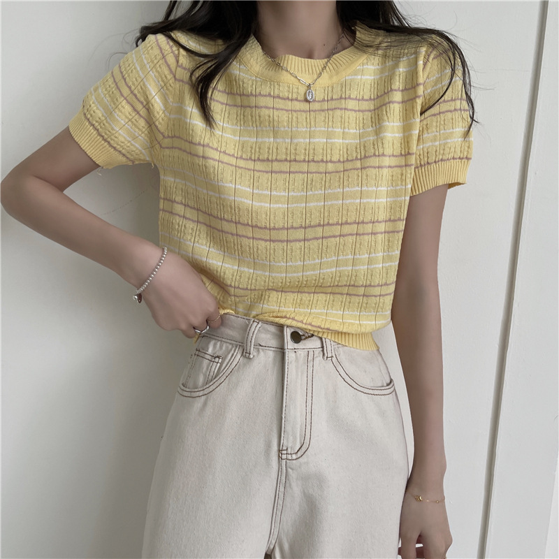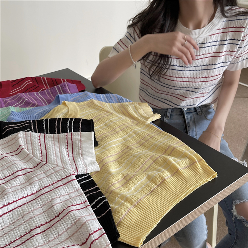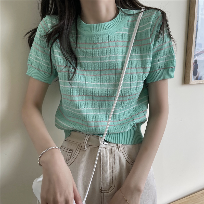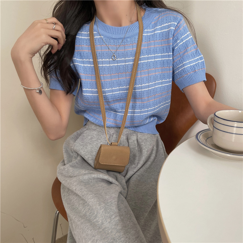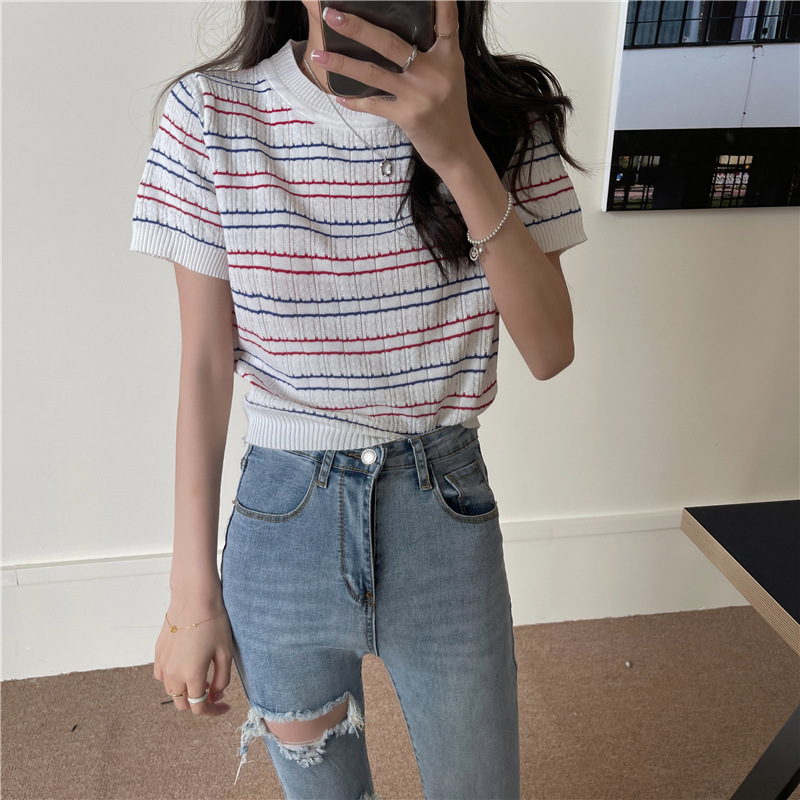 스웨터 슬림 여성 의류 2024 새로운 여름 바닥 셔츠 반팔 탑 작은 향기로운 달콤한 매력 스타일 트렌드스토어 가기