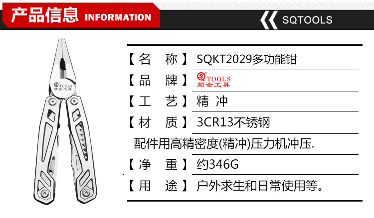 SQT Shun 풀 2029 다기능 나이프 펜치 접이식 칼 스테인레스 스틸 다목적 도구 야외 캠핑 장비 EDC