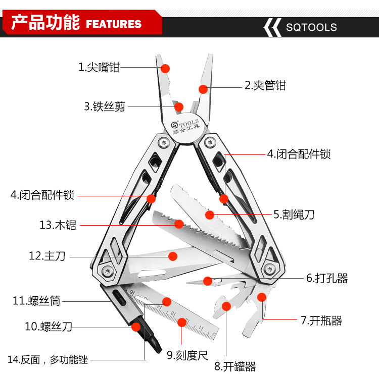 SQT Shun 풀 2029 다기능 나이프 펜치 접이식 칼 스테인레스 스틸 다목적 도구 야외 캠핑 장비 EDC스토어 가기
