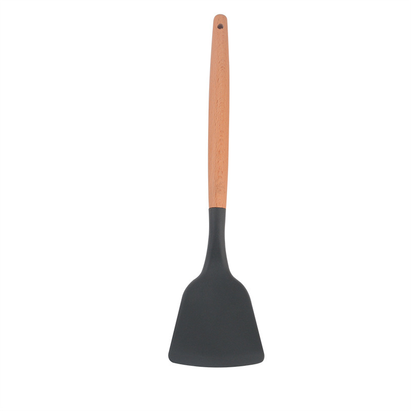 도매 나무 손잡이 실리콘 주방 용품 11 조각 주방 볶음 주걱 세트 가정용 수프 헤지 스푼 요리 도구