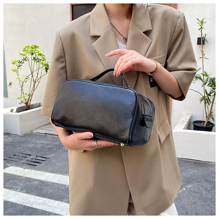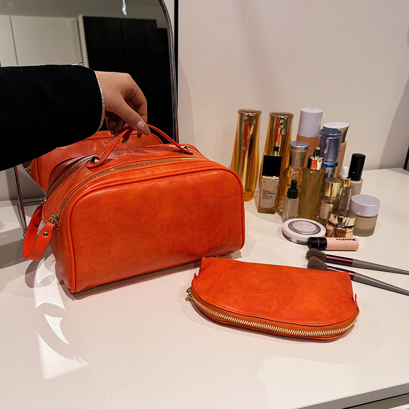 여행 휴대용 간단한 패션 화장품 가방 대용량 단색 PU 지퍼 세면도구 가방 휴대용 화장품 가방 어머니 가방스토어 가기