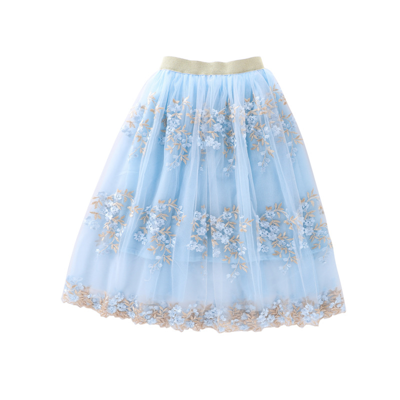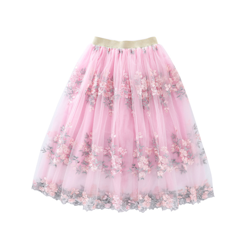 새로운 자수 긴 소녀의 원피스 대외 무역 폭발 부모 스커트 소녀의 메쉬 모든 일치 허리 스커트스토어 가기