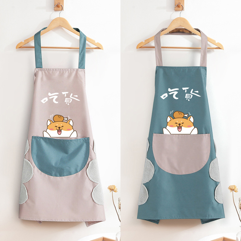 공장 직판 만화 코기 손 닦는 앞치마 방수 방유 가정용 주방 앞치마 한국 스타일 여성 청소 앞치마