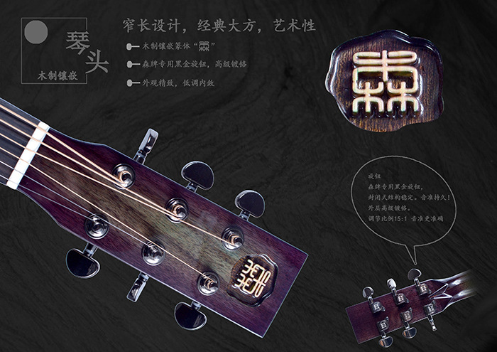 Sengewei segue Sen의 기타 베니어 얼굴 싱글 민속 어쿠스틱 기타 꿈 보라색 연기 40 인치 수제스토어 가기