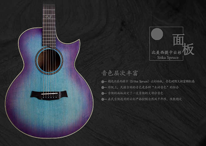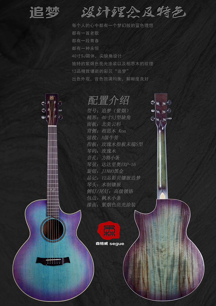 Sengewei segue Sen의 기타 베니어 얼굴 싱글 민속 어쿠스틱 기타 꿈 보라색 연기 40 인치 수제
