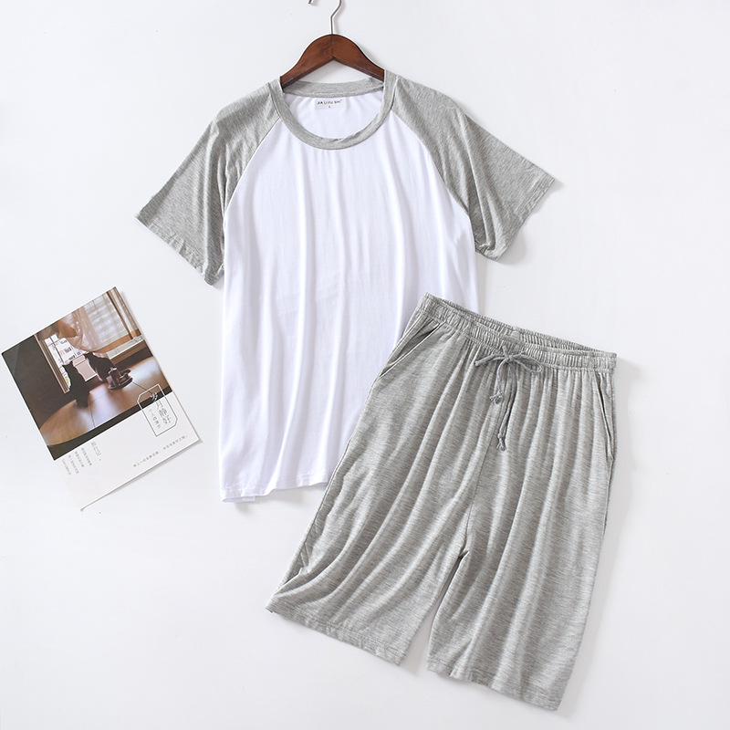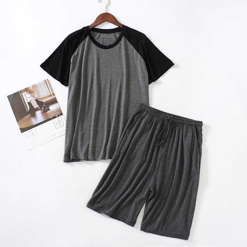 모달 잠옷 남자의 얇은 느슨한 반팔 반바지 여름 아웃웨어 스포츠 홈웨어 세트 재고