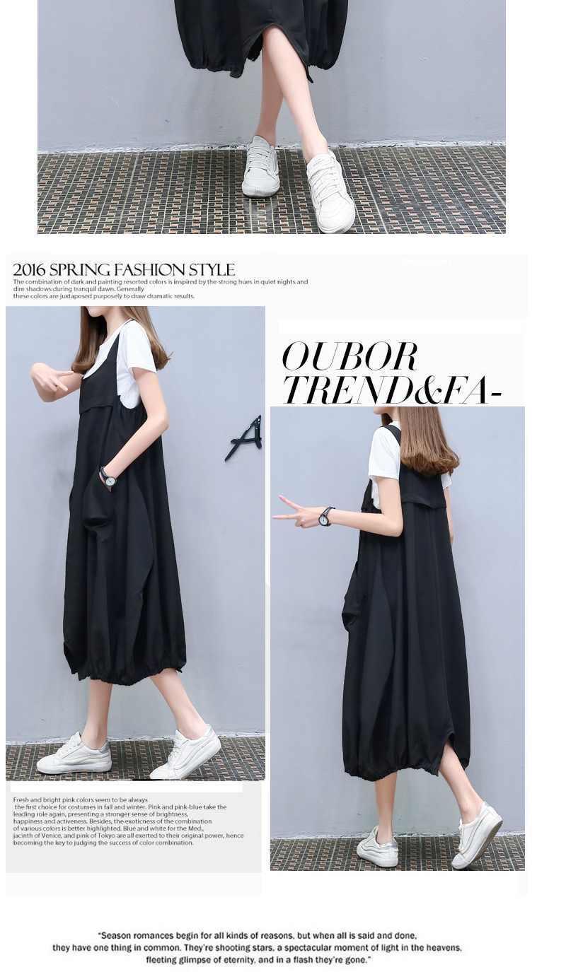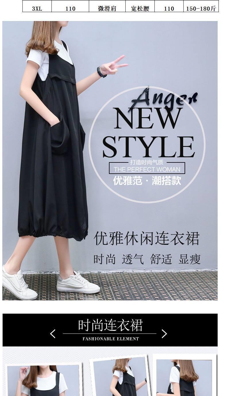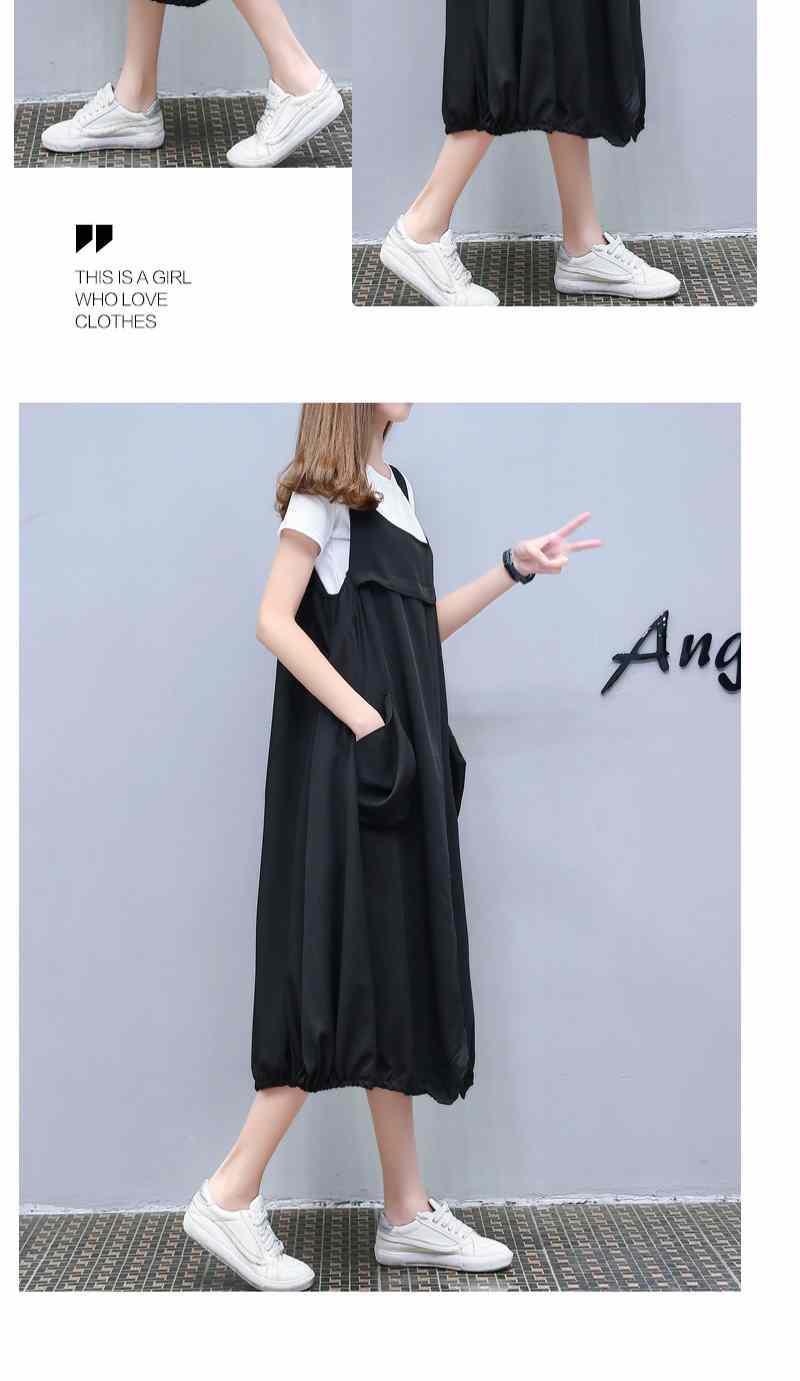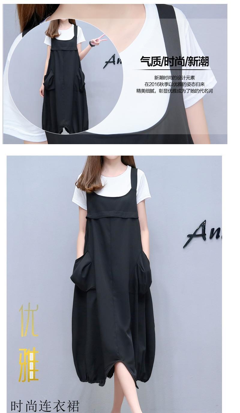 플러스 사이즈 원피스 여름 투피스 티셔츠 느슨한 스트랩 스커트 새로운 여성의 2020 캐주얼 세트 A-라인 스커트스토어 가기