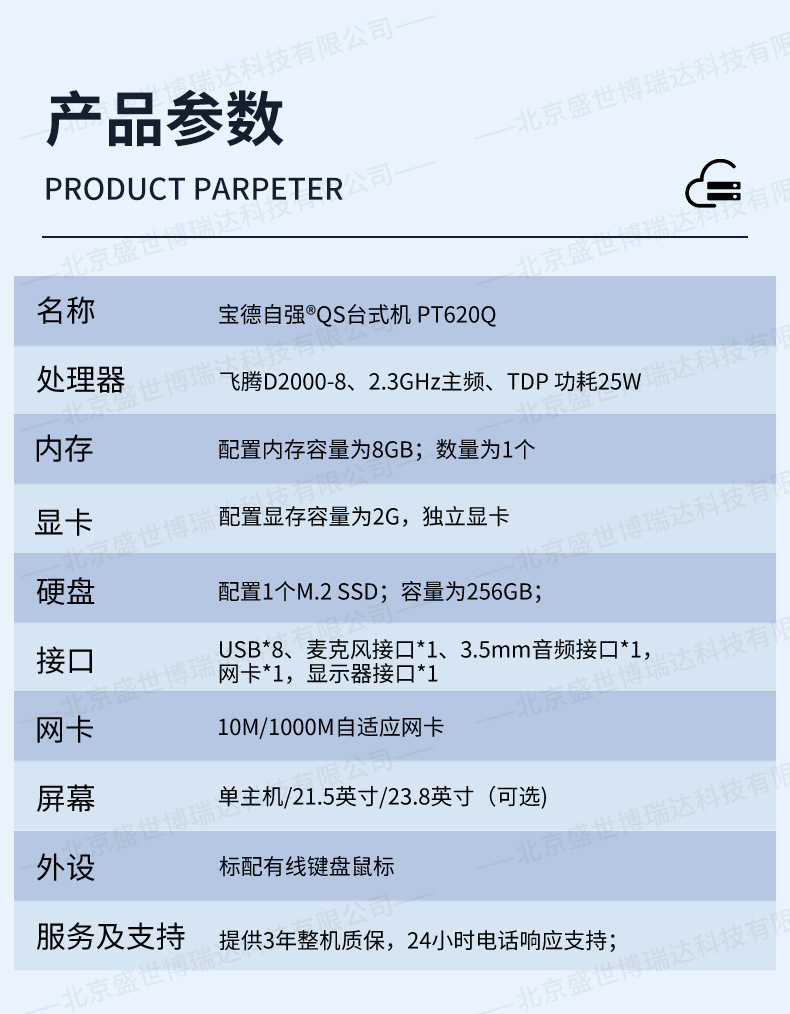 宝德PT620Q腾锐D2000 八核8G/256G/4G独显/试用UOS/信创台式机超值价:¥2200