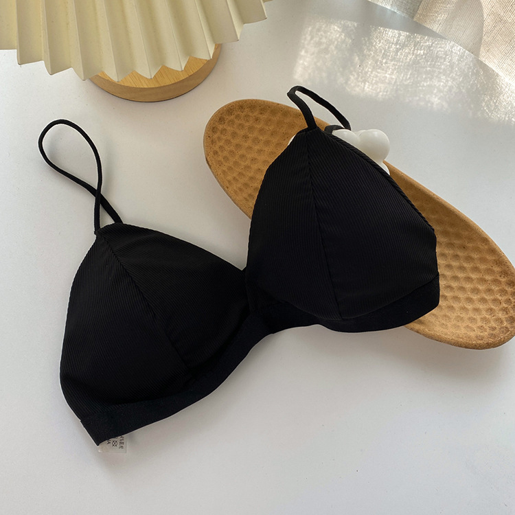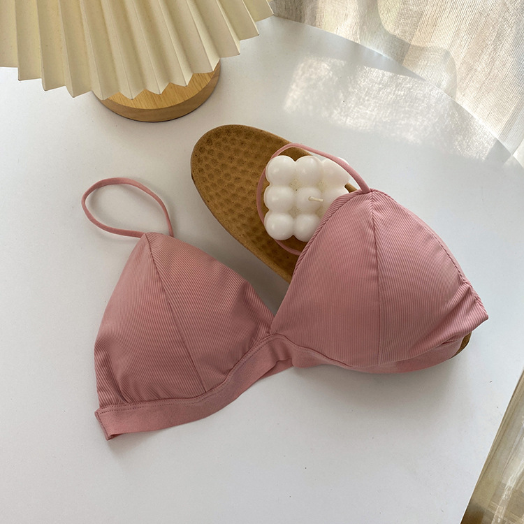 2021 여름 소녀의 스레드 아이스 실크 캐미솔 조끼 멋진 효과 가슴 포장을위한 통기성 비 테두리 프랑스 삼각형 컵스토어 가기