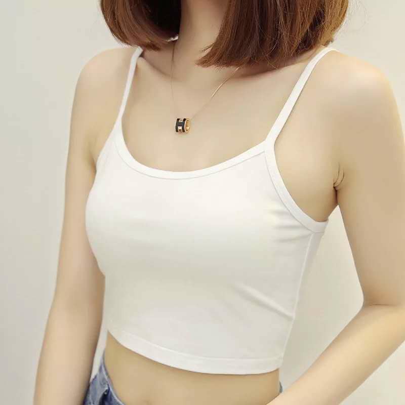 캐미솔 여성용 하의 겉옷 민소매 탑 올매치 섹시한 배꼽 단색 가슴 포장 캐미솔 여성 학생 내부 착용 캐미솔