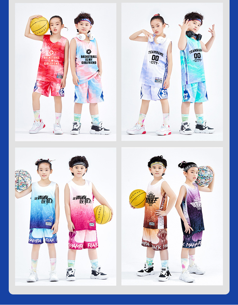 어린이 농구복 세트, 남학생, 여학생, 초중등학생용 조끼, 스포츠 훈련 캠프 블루 저지, 여름용 반팔 속건성스토어 가기