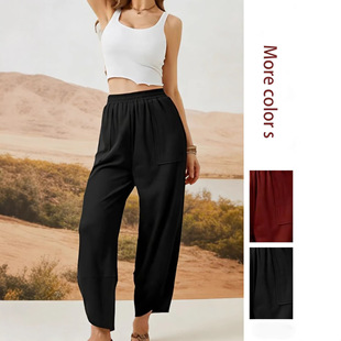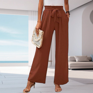 아마존 2024 유럽과 미국 여성의 여름 짧은 주름 주머니 A-모양의 탄성 레이스 업 하이 허리 새 반바지