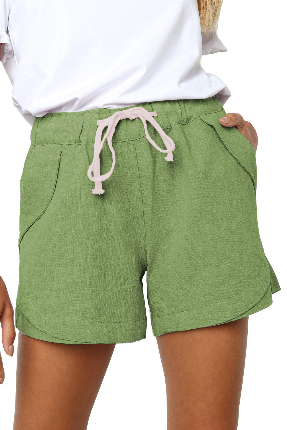 아마존 2024 유럽과 미국 여성의 여름 짧은 주름 주머니 A-모양의 탄성 레이스 업 하이 허리 새 반바지스토어 가기