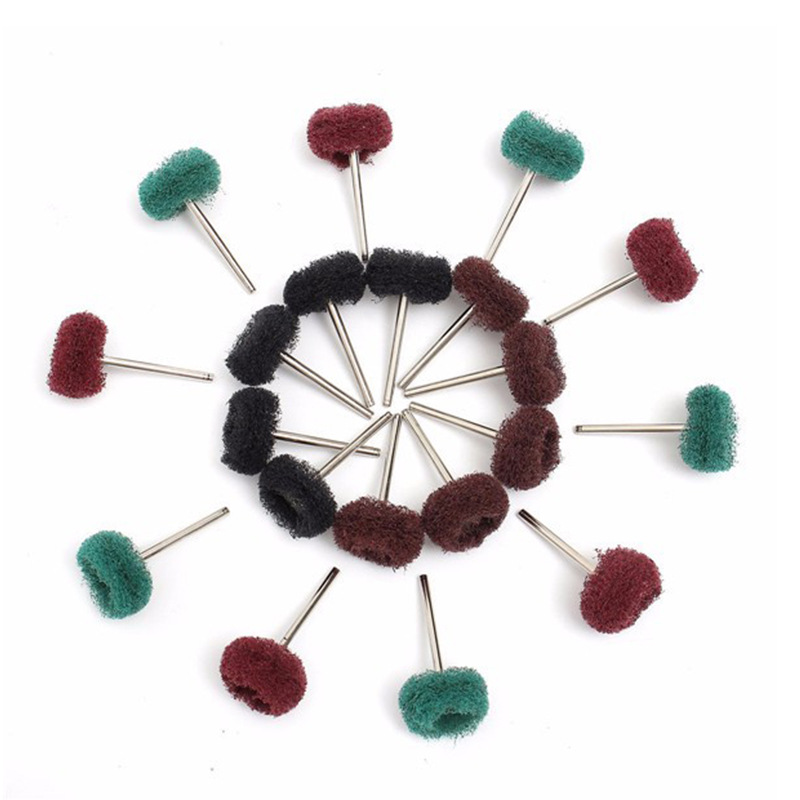 40pc 연마 휠 미니 브러시 핸들 섬유 드로잉 수세미 전기 연삭 헤드 3mm 핸들 직경 나일론 연삭 헤드